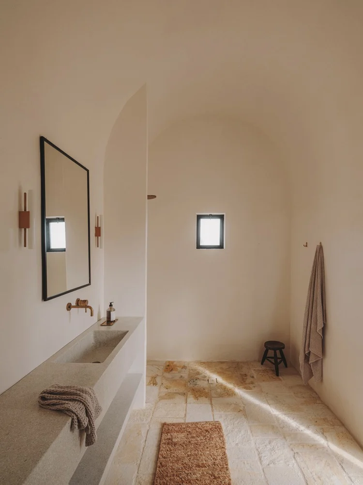 Studio Andrew Trotter, Puglia’da 19. yüzyıldan kalma bir kız okulunu yüksek tonozlu tavanların ve toprak tonların öne çıktığı oldukça yalın mekanlardan meydana gelen Casolare Scarani isminde bir eve dönüştürdü. Başlangıçta tamamen terk edilmiş halde olan yapıya yeni kimliğini kazandırmak üzere yapılan müdahalelerde yapının özgün karakterinin mümkün olduğunca korunması hedeflenmiş. Müşterilerle birlikte günlerce yıllardır dökülmekte olan boya tabakasını kazımak için uğraşan tasarımcılar, sonunda yapının en dikkat çeken unsurlarından olan revaklı bölümün harika taşını ortaya çıkarmayı başarmış. İç mekanlarda da eski okulun tonozlu tavanları, yerel bir zanaatkar tarafından yapılan kireç sıvası ile kaplanmış ve korunmuş. Duvarlar da aynı yöntem ile kaplanmış. Eski taşların hepsi yerine yerleştirildikten sonra ise eksikler için Puglia’ya özgü bir malzeme olan ve eski taşlara uyum sağlayan yeni chianca’lar tercih edilmiş.