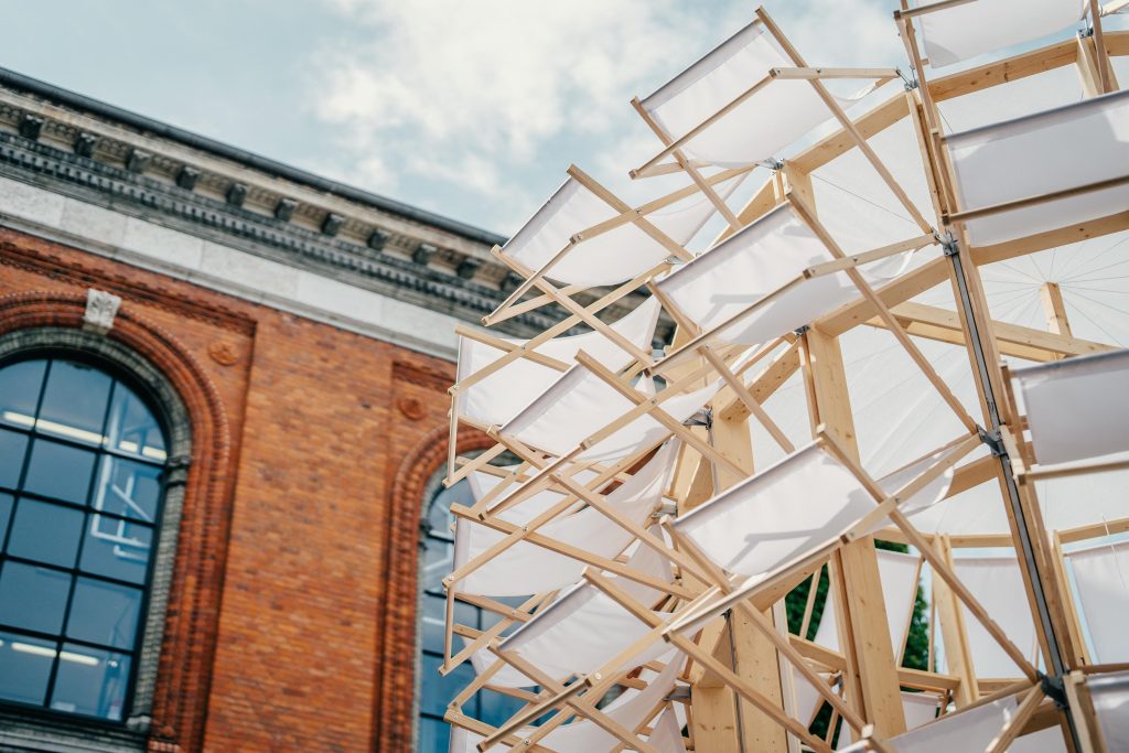 Çek-İsveç kökenli Lasovsky Johansson Architects tarafından tasarlanan PETAL Pavyonu, Kopenhag’daki Danimarka Tasarım Müzesi’nin avlusunda yer alıyor. Basit bir şezlongdan ilham alarak şekillenen kinetik yapı, gündelik bir nesnenin yaratıcı bir şekilde yeniden yorumlanmasının ilgi çekici bir örneği. Pavyonun tasarımında, bir çiçeğin çiçek açma süreci ve mekânsal dönüşümü görsel bir metafor olarak kullanılmış. CHART Art Fair 2023 için tasarlanan PETAL, gündüz ve gece arasında değişen dinamik bir deneyim sunarak hem işlevsellik hem de estetik açıdan özgün bir perspektif ortaya koyuyor.