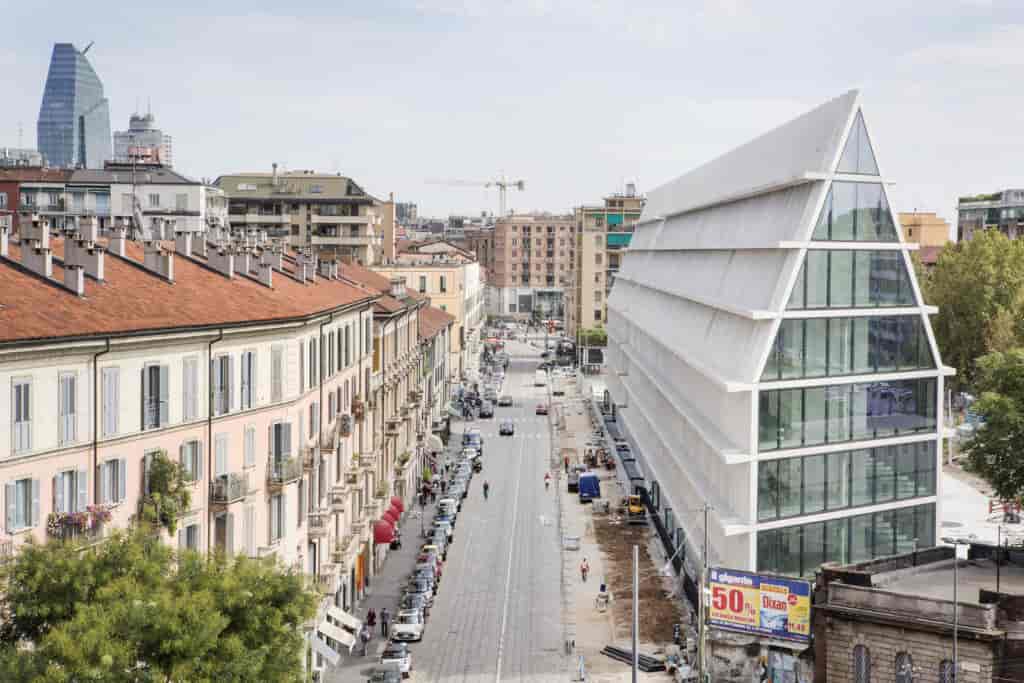 Milano’nun Porta Volta bölgesinde yer alan Fondazione Feltrinelli Herzog de Meuron’un İtalya’da gerçekleştirdiği ilk proje olmasıyla dikkat çekiyor. Vakfın genel merkezi olarak tasarlanan yapı Microsoft Italia’nın ofislerine de ev sahipliği yapıyor. Proje, Fondazione binası ile birlikte, ağırlıklı olarak ofis fonksiyonunu bünyesinde barındıran iki binanın ve mevcut bulvarların uzantısı olarak geniş yeşil alanların tasarlanması işlerini kapsamaktadır.