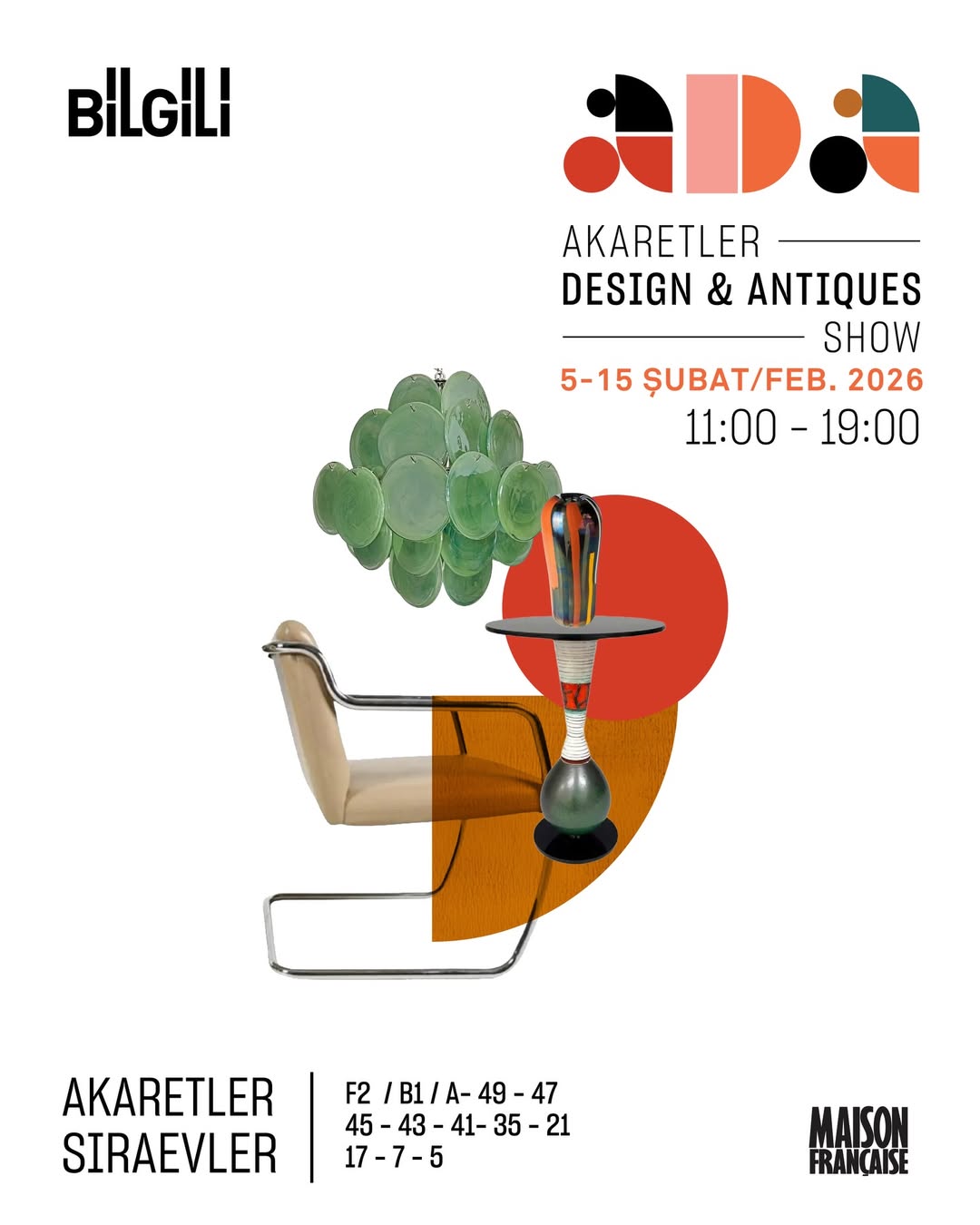 Akaretler Sıraevler’in tarihsel dokusunda konumlanan ADA – Akaretler Design & Antiques Show, 5 – 15 Şubat tarihleri arasında üçüncü edisyonuyla şehre dönüyor. Türkiye’nin en seçkin antika evlerini, tasarım galerilerini ve koleksiyonerlerini bir araya getiren seçki, şehrin kültürel haritasında kendine özgü bir alan açıyor. Bilgili Holding’in vizyonuyla hayata geçen ADA, yalnızca bir sergi değil; farklı dönemler, disiplinler ve üretim biçimleri arasında kurulan çok katmanlı bir diyalog alanı olarak öne çıkıyor. Ziyaretçiler, geçmişin zanaatkârlığını güncel tasarım pratikleriyle aynı bağlamda keşfetme imkânı buluyor.