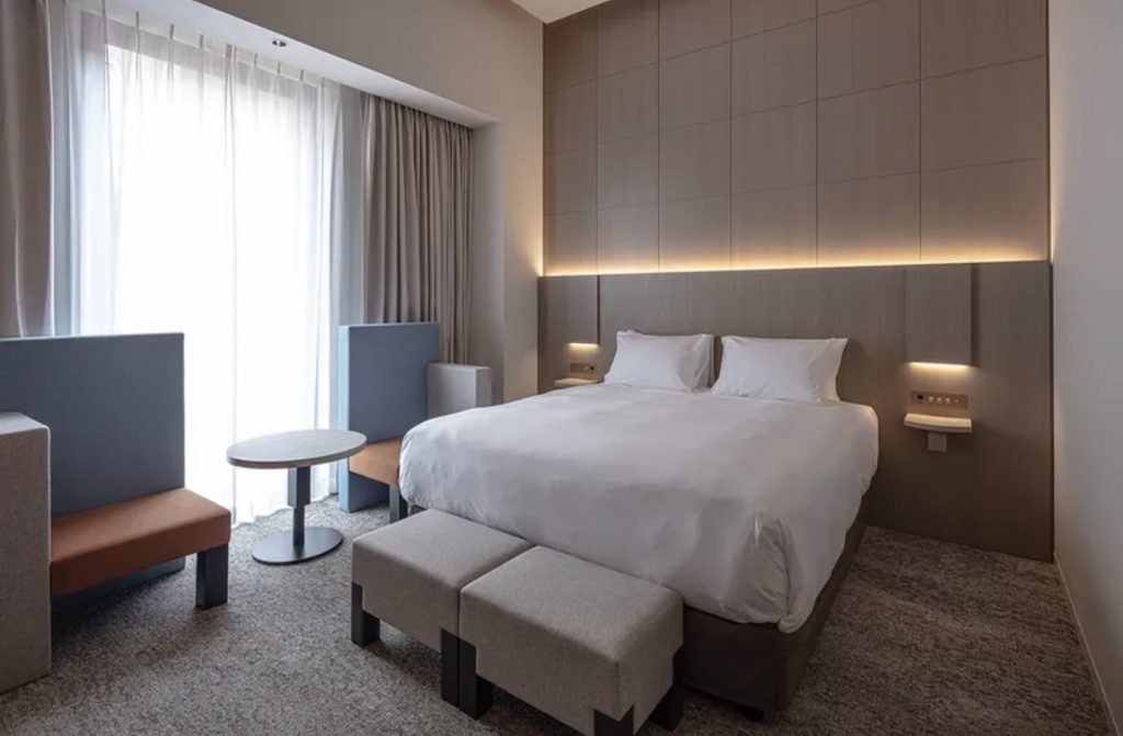 Uchida Design Inc., Pritzker ödüllü İtalyan mimar Aldo Rossi’nin 1989 yılında tasarladığı Hotel Il Palazzo’nun iç mekan tasarımını yeniledi. Japonya’nın ilk butik otellerinden olan ve Fukuoka şehrinde bulunan yapının yeni iç mekanı, ‘yumuşaklık ve doğal malzemeler’ yaklaşımına sahip bir görünüm kazandı. Aldo Rossi’nin postmodern mimari stilini yansıtan projelerinden biri olan Palazzo Oteli, kırmızı cephesi ve parlak yeşil bakır lentolarıyla çevresindeki diğer yapılardan ayrışıyor. Orijinal tasarıma uyumlu iç mekan yenilemesi, kırmızı, yeşil ve mavi renklerin kullanımını modern mirasa sahip çıkarak yeniden yorumluyor.