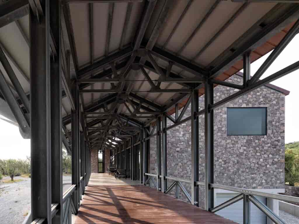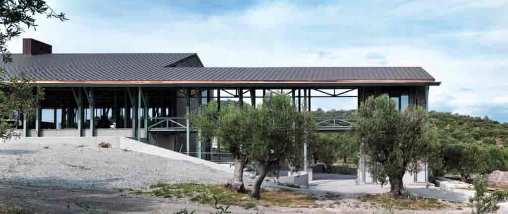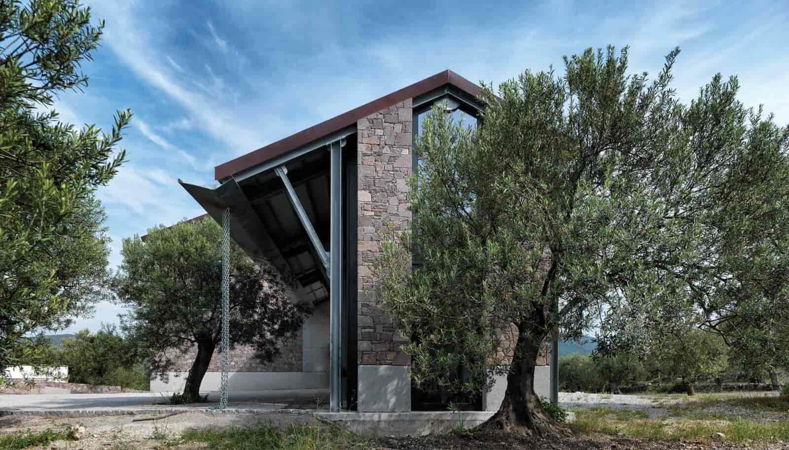 Yerel yöntemlerle toplanan zeytinlerden zeytinyağı üretmek üzere tasarlanan 1000m2’lik yapılar bütünü misafirhane, dükkan ve üretim alanlarından oluşuyor. Arazinin etkileyici deniz manzarası, taş yapılar ve zeytin ağaçları ile birlikte eşsiz bir atmosfer yaratıyor.