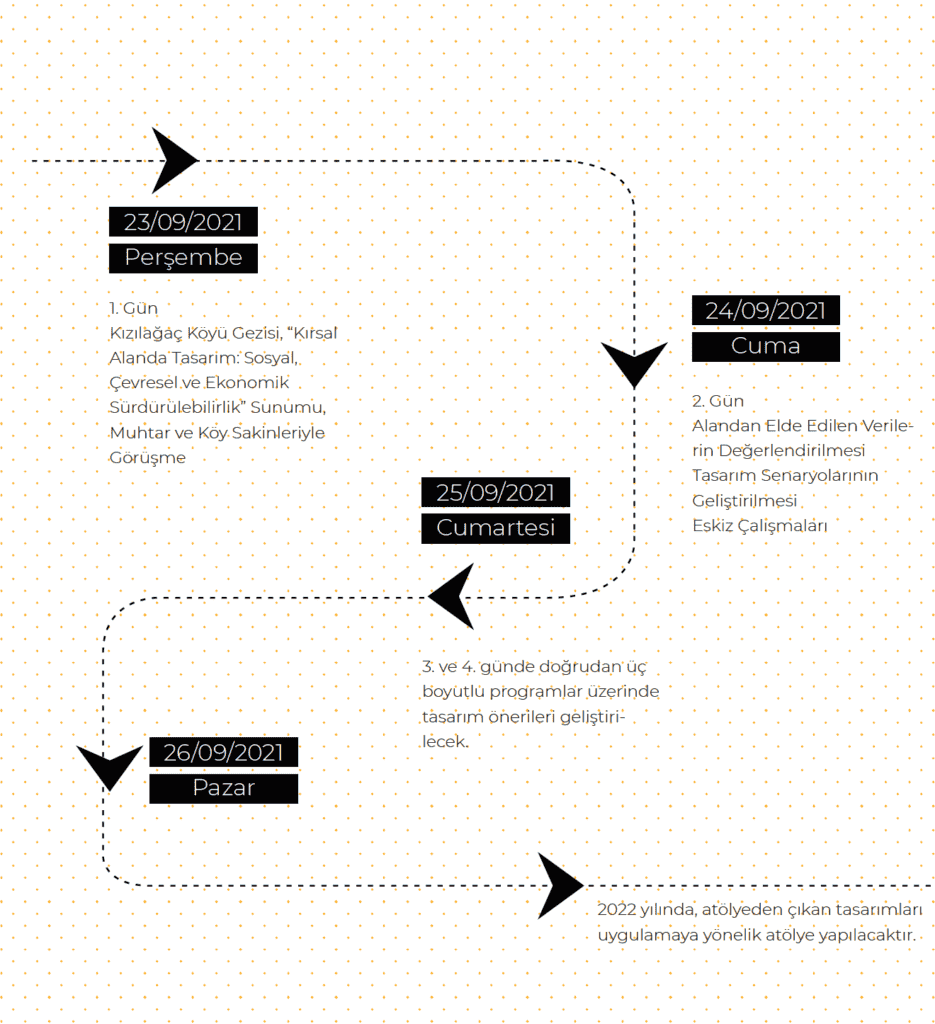 İki aşamalı olacak projenin ilk aşaması olan bu atölyede 23-26 Eylül 2021 tarihleri arasında köy okulunun yeniden işlevlendirilmesine dair mekansal önerilerin geliştirilmesi ve 2022 yılında gerçekleşecek uygulama aşaması için sürecin bütüncül olarak tasarlanması bekleniyor.