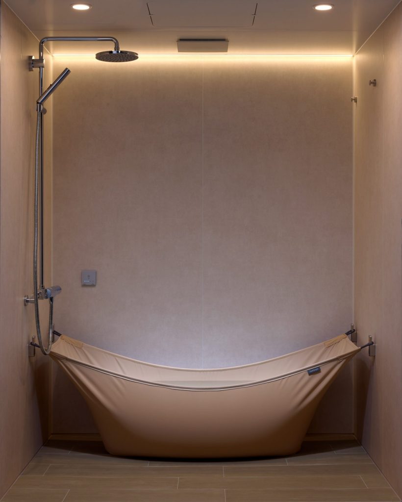 Japon ürün tasarım grubu LIXIL, Designart Tokyo’da hamak gibi asılabilen, su geçirmez bir kumaştan üretilmiş katlanabilir bir küvet sergiledi. Bathtope isimli bu yeni küvet, kullanılmadığında rulo yapılabilen ve bir karton tüp içinde saklanabilen bir kumaştan üretiliyor.
