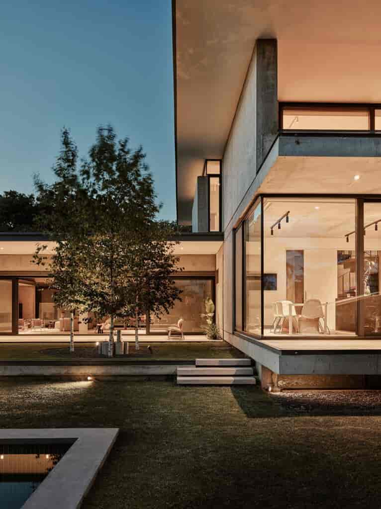 Bu kademelenme, yapının toprakla olan ilişkisini güçlendirirken aynı zamanda farklı mekan yükseklikleri ile teras çatıların kademelenmesine de fırsat tanıyor. Bu durum, yapıya kütle ve form anlamında da nitelik kazandırırken aynı zamanda gün ışığının ev içerisine girmesine ve tüm yıl boyunca mevsim geçişlerinde evin doğal ışığının devinimine imkan verecek açıklıkların da tasarlanmasında rol oynuyor.