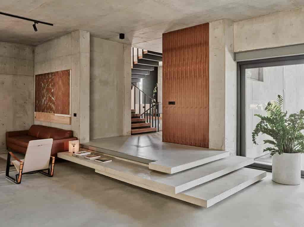 PIN Architects’in pek çok yapısında görülebilen yapı tektoniği olan yapı topolojisinin elemanları; brüt beton, taşıyıcı sistem, altyapı ve tüm mimari elemanlar ile iç mekandaki malzeme ve mobilya tasarımları, Can Evi’nde de görülebilir nitelikte.