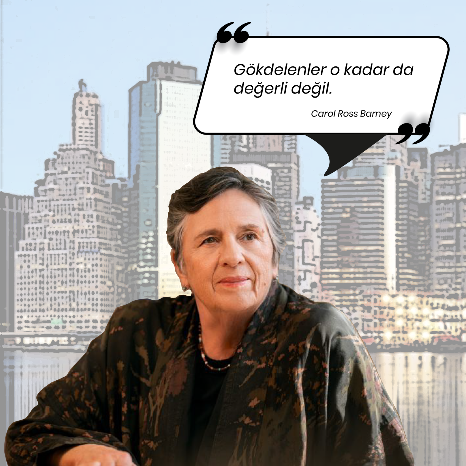 Carol Ross Barney’nin mimari eleştirisi Amerika özelinde olsa da gökdelenlerin ülkemizde de şehir silüetlerinde görünerek önemli bir yer edindiğini söyleyebiliriz. Mimarın sözleri, gökdelenlerin yaygınlaşmasının ve dikey-yatay mimari birlikteliğinin şehir yoğunluğunda ne kadar fayda sağladığı, sürdürülebilirlik açısından tercih edilebilir başka çözümlerin de olabileceği ve de kentin tarihi dokusunu koruyarak uygulamaların yapılması gerekliliğini vurgular nitelikte.