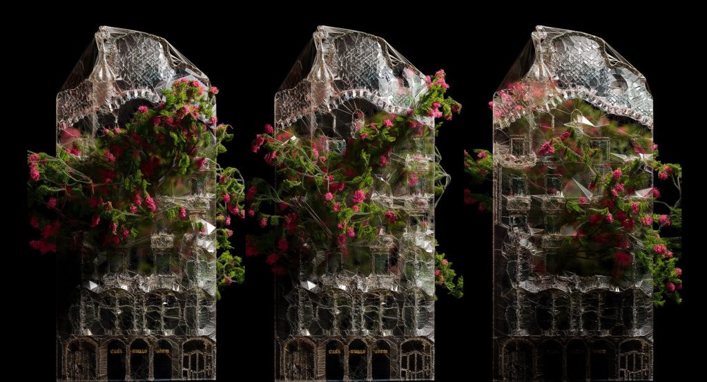 Quayola’nın “Arborescent” adlı çalışması, bina cephesine entegre edilen dijital ağaç ve dallarla, doğal ve yapay olanın kesiştiği bir deneyim sunuyor. Sanatçı, bu dijital formları rüzgarın hareketlerini taklit eden algoritmalarla şekillendiriyor. Hareket eden dallar ve organik formlar, Casa Batlló’nun mimari dokusuyla bütünleşirken, projeksiyonla bina yüzeyine canlı renkler ve tonlar taşıyor.