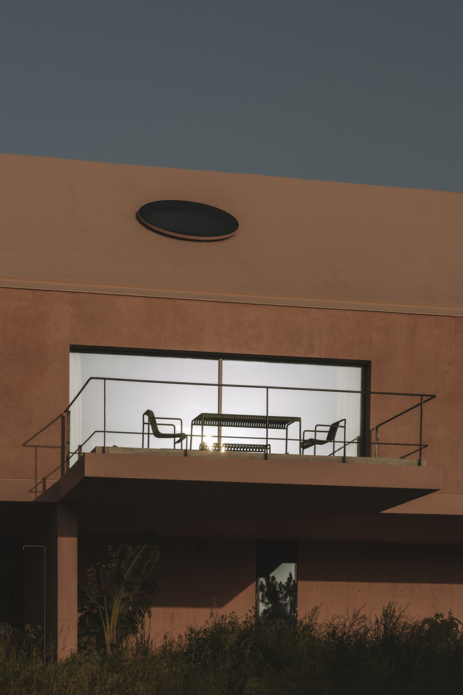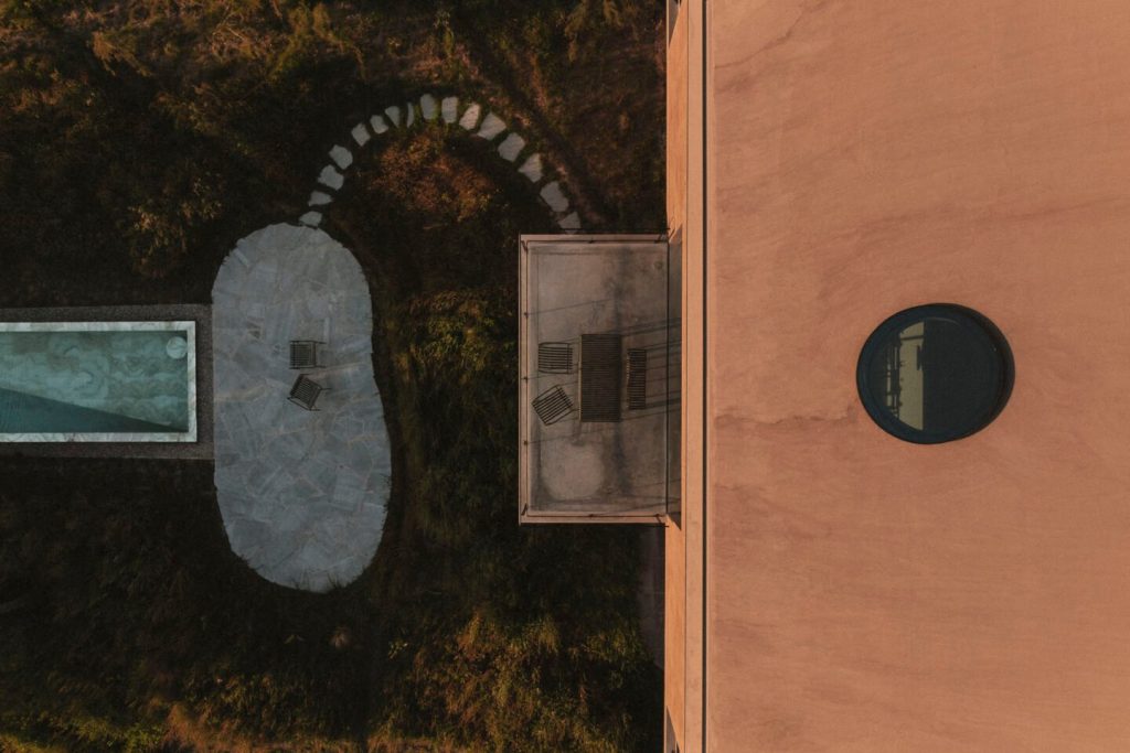 Araziye adım atıldığı anda kullanıcı günlük hayatın karmaşasından uzaklaşıyor. Uzaktan gelen çan sesleri, deniz havası ve sürekli esen rüzgâr, okyanusu evin içindeymiş gibi hissettiriyor. Rengi kırmızıya çalan kireç sıvalı cephesi, çevresindeki topografyayla uyum sağlayarak doğal bir devamlılık hissi yaratıyor. Havuz tarafındaki kırmızı camların yarattığı sıcak atmosferle ise manzara bambaşka bir tona bürünüyor.
