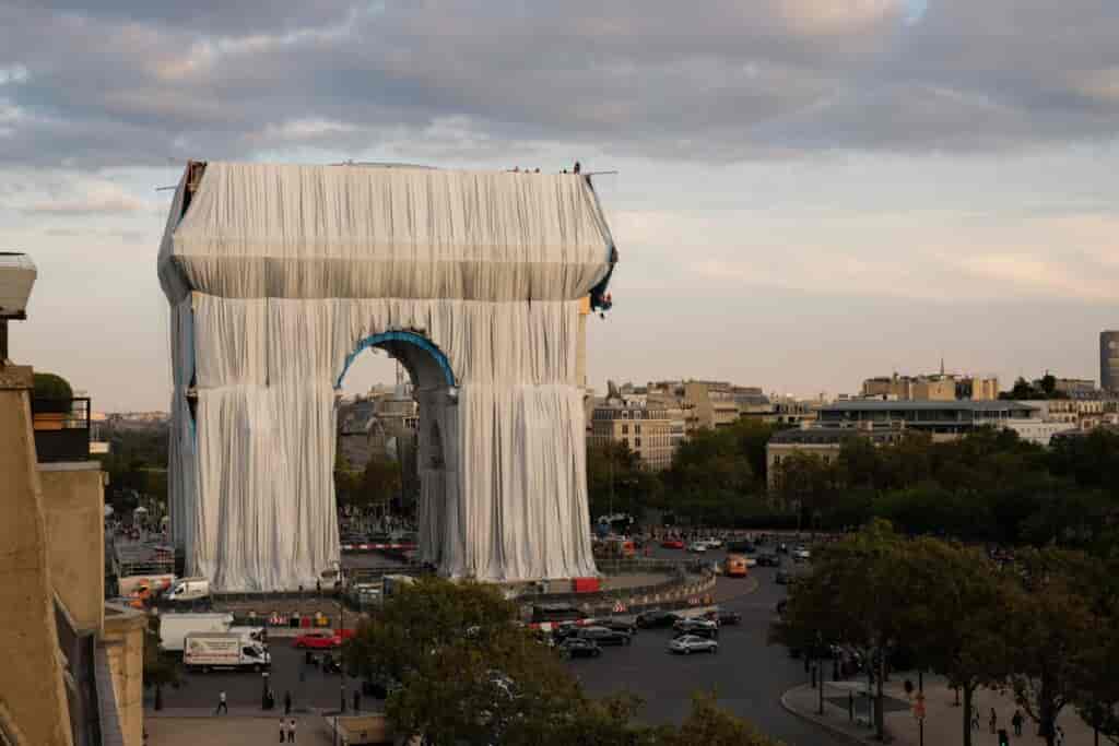 Christo’nun Paris’in meşhur tarihi anıtı Arc de Triomphe’u kaplayarak bambaşka bir nesneye dönüştürme hayali gerçek oldu. Etkileyici projenin fikir ve yapım aşaması neredeyse 60 yıl sürmüş. Christo, Paris’te Arc de Triomphe’un yakınlarında yaşarken anıttan büyülenmiş ve bu yapının nasıl görünebileceğine dair görseller hazırlamış. İkili 1961 yılında bugün uygulanana çok benzer bir fikir ortaya atmış olsa da Christo projeyi aktif olarak geliştirmeye ancak 2017 yılında başlayabilmiş. Jeanne-Claude’un 2009, Christo’nun da 2020 yılındaki ölümlerinin ardından, kısa süre önce açılışı yapılan proje ile dünya çapında ünlenmiş yapıları kaplamaları ve dönüştürmeleri ile tanınan ikilinin ‘yaşam boyu kurdukları hayal’ gerçekleşmiş.