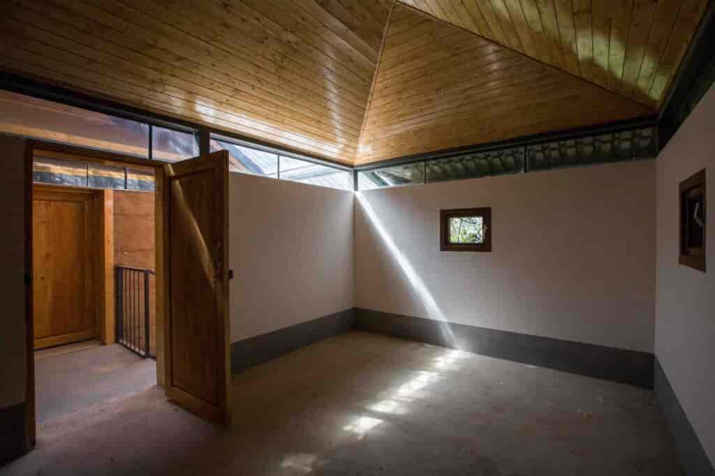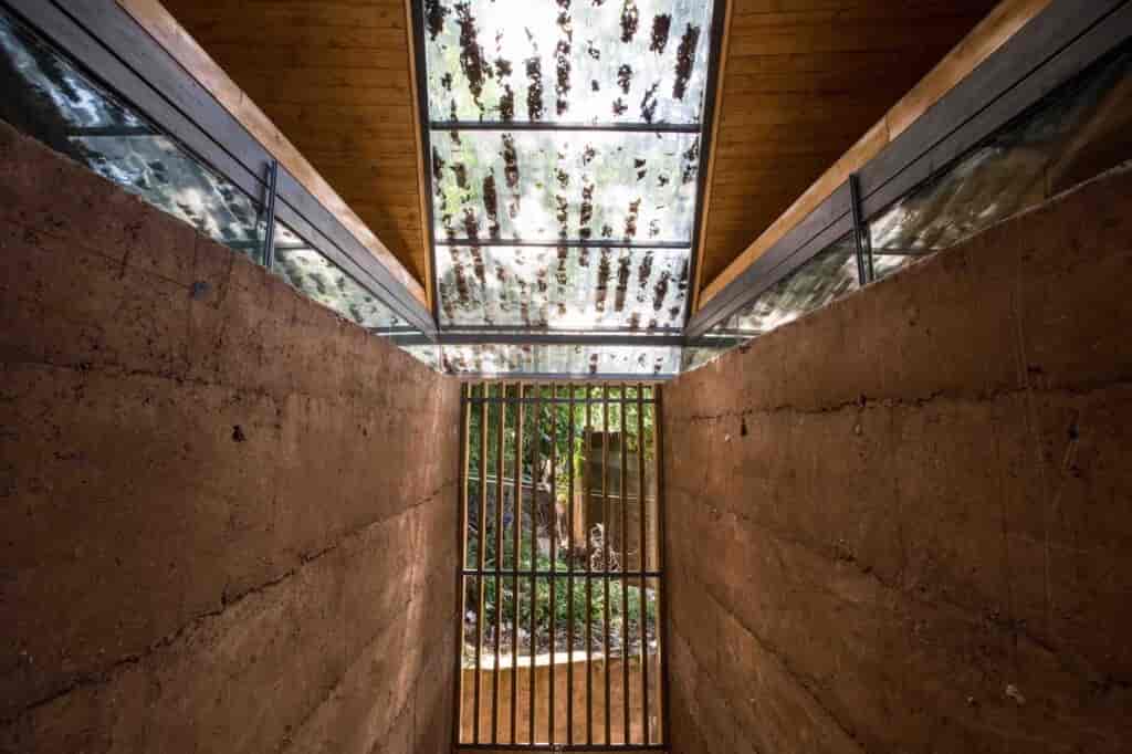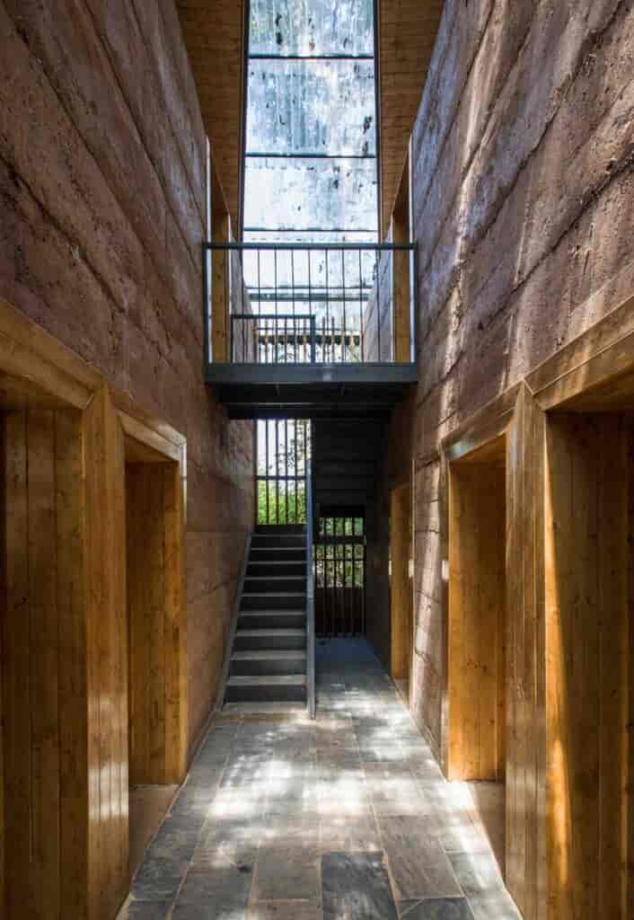 Yapının termal özelliklerini geliştirmek amacıyla çift camlı pencereler ve yalıtımlı çatı kullanılmış. Sismik performans için ise duvarda kullanılan kil, kum, çim gibi malzemeler strüktürel elemanları depreme daha dayanıklı hale getirilmiş. Duvara eklenen çelik kalıplar ve beton şeritler, yapısal bütünlüğün iyileştirilmesini ve dikey çatlamayı önlemeyi sağlamış. Beton şeritler, toprak cepheyle bütünleşecek şekilde duvarın içine gizlenmiş.