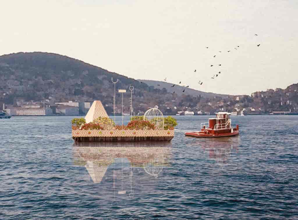 Studio Ossidiana’nın (Alessandra Covini, Giovanni Bellotti, Sze Wing Chan) Sera Tolgay, Daniel Marshall, Merve Yücel, Kerim Bayer ve Ahmet Topbaş’la birlikte gerçekleştirdiği göçebe pavyon ‘Büyükada Şarkı Hatları’ hem bir tasarım projesi hem de bir yolculuk olarak tanımlanıyor. Proje kapsamında, Stimuleringsfonds ve İstanbul Büyükşehir Belediyesi’nin destekleri sonucunda bitkilere, toprağa, böceklere ve kuşlara ev sahipliği yapan yüzer bir bahçe hayata geçirilmiş. Bahçe, yolculuğu boyunca çeşitli etkinliklere ev sahipliği yaparak başka türlerle olan karmaşık ilişkimizi araştıracak. Sürekli bir dönüşüm ve hareket içerisinde olacak olan pavyon 26 Nisan-13 Haziran tarihleri arasında Büyükada-Haliç hattında görülebilecek.