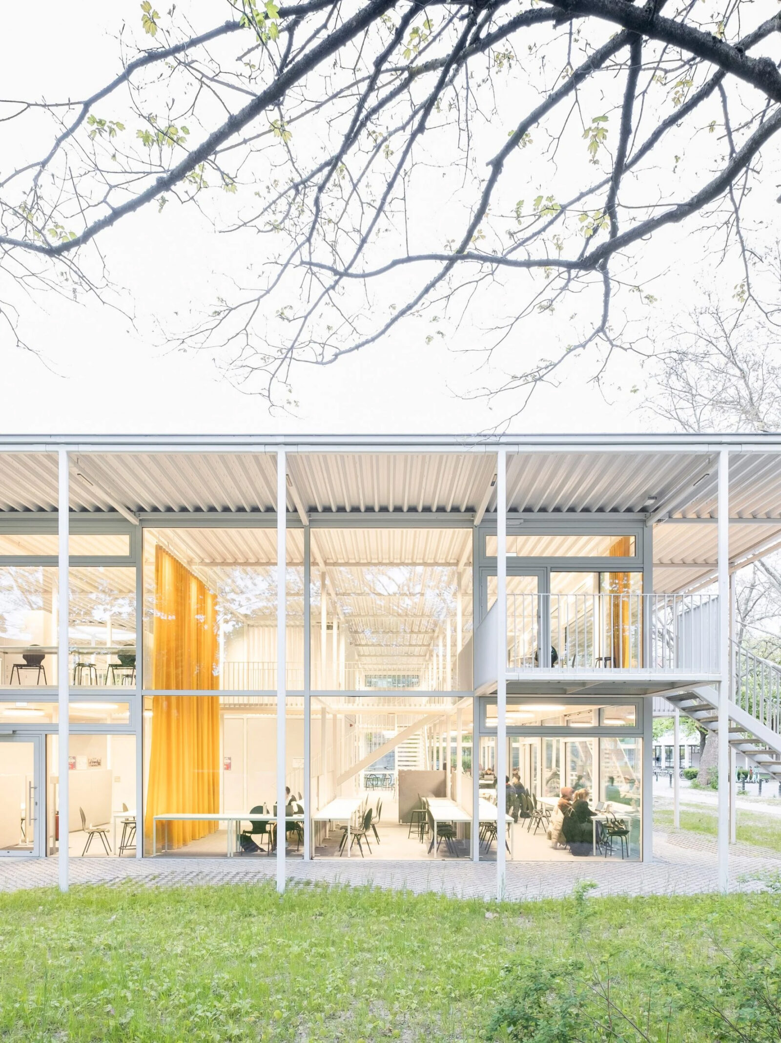 Study Pavilion, esnek çalışma ve sosyalleşme alanlarını içeren bir kampüs binası olarak tasarlandı. Çelik ve ahşabın birlikte kullanıldığı hibrit bir sisteme sahip olan pavilyon, sürdürülebilirlik kavramını sorgulayarak, çalışma, iş birliği ve topluluk etkinlikleri için davetkar ve eğlenceli bir ortam yaratmayı amaçlıyor.