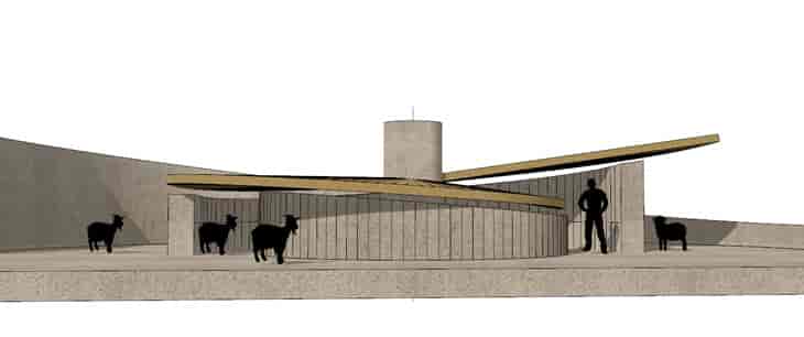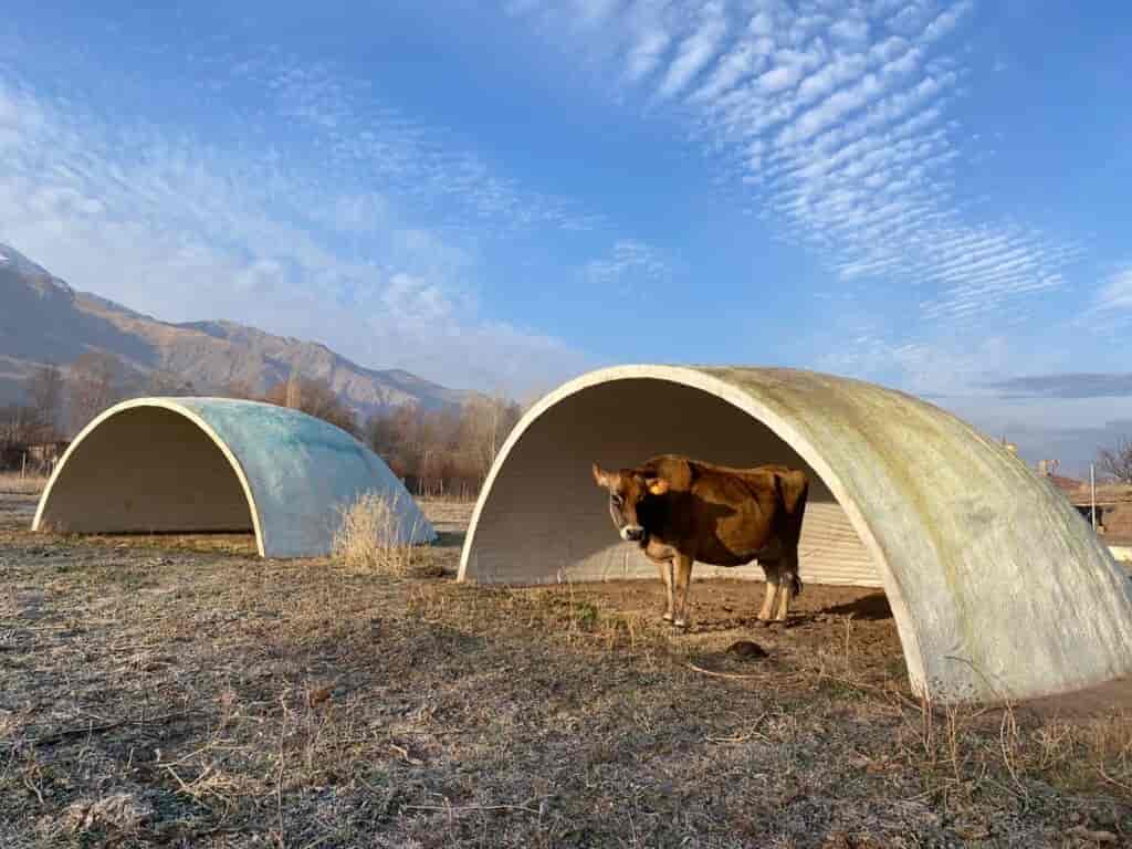 İneklerin gerektiğinde korunaklı bir alana sahip olabilmesi için tasarlanan proje oldukça deneysel bir tasarım. Mimarlar ve Han Tümertekin tarafından tasarlanan proje 2.5 cm kalınlığında beton bir yüzeyden oluşmaktadır. Proje bulunduğu yere ait olma fikri üzerinden ortaya çıkmış bir tasarımdır.