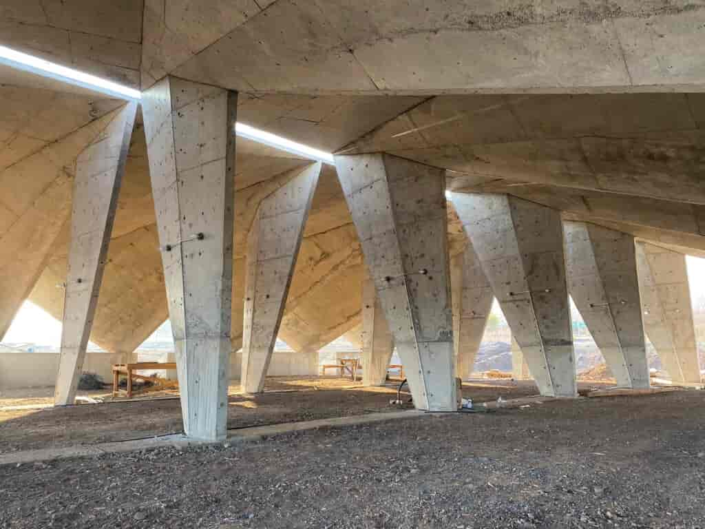 Yapının rüzgarı kesmesi ve dayanıklı olması tasarıma yön veren önemli unsurlardan olmuş. İlk fikir araziye hiç yapı malzemesi getirmeden arazide bulunan malzemelerle bir yapı inşa etmekmiş fakat Erzincan’ın önemli bir deprem bölgesi olmasından dolayı bu fikir uygulanamamış. Yapının en az fiziksel müdahale içerecek şekilde yapılması ana kararlardan biri olmuş. Kubbe formuna yönelim kendi kendini taşıyabilen bir yüzey yaratma fikri sonucunda çıkmış. İçerisinde tekstil bulunan 2.5 cm kalınlığındaki fibrobeton katmanı dayanıklı bir şekilde hayata geçirmek için mühendisler Hanif Kara ve Ahmet Topbaş projeye ciddi katkılarda bulunmuşlar. Kutluğ Ataman’ın önerisi ile geçen zamanın malzeme yüzeyinden okunabilmesi için kabuğa metal tozları püskürtülmüş. Bu metal malzeme okside oldukça farklı şekillerde görünerek yapıya sürekli değişen ve zaman içerisinde evrilen bir kimlik kazandırmış.