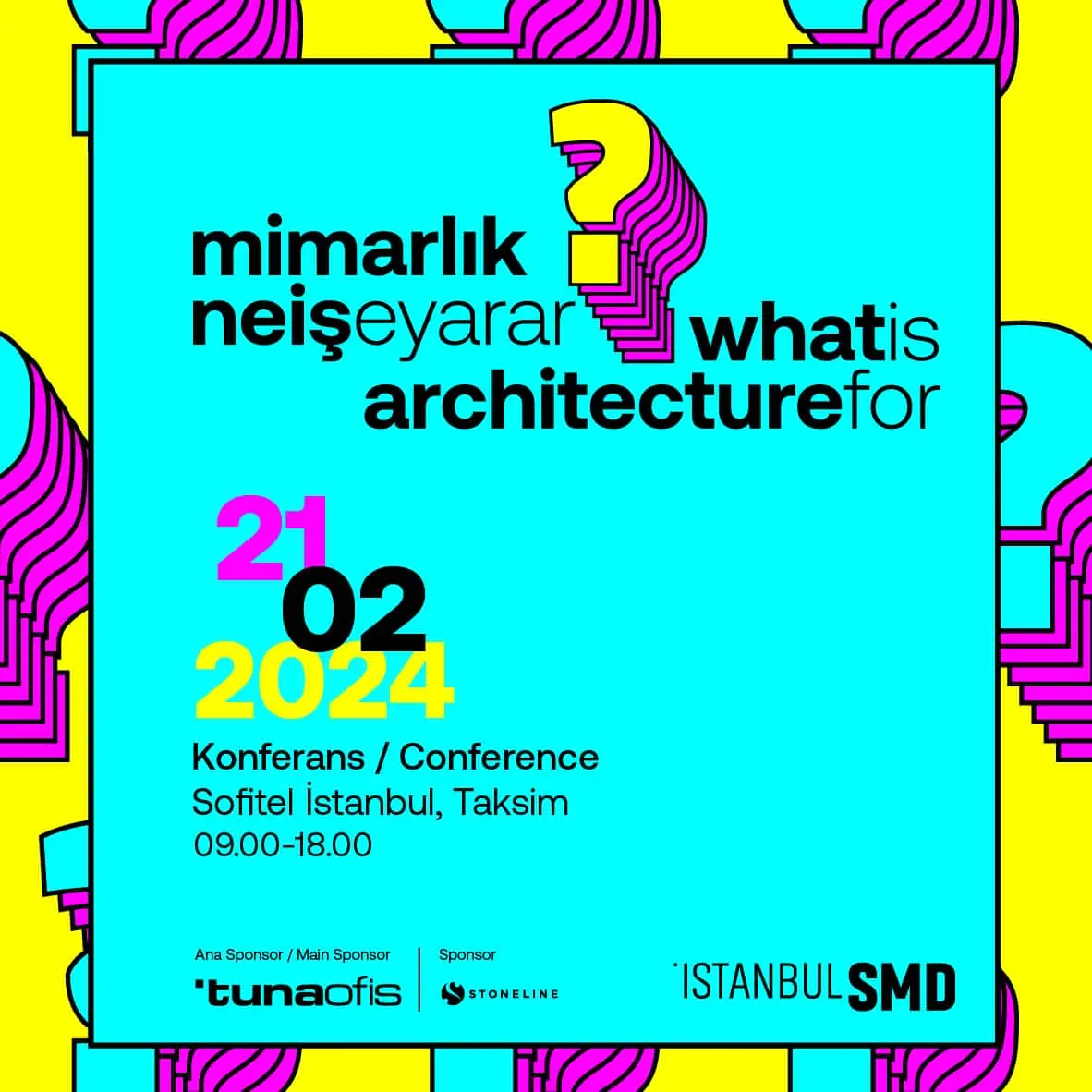 Yerli yabancı alanının uzmanı konuşmacılarıyla, mimarlık ortamının güncel konularını, yaratıcı, disiplinlerarası bir yaklaşımla gündeme taşımayı hedefleyen “Mimarlık Ne İşe Yarar?” konferansı, ana destekçisi Tuna Ofis Mobilyaları’nın ve Stoneline’ın sponsorluğunda, 21 Şubat 2024 tarihinde Sofitel İstanbul Taksim Otel ev sahipliğinde düzenlenecek.