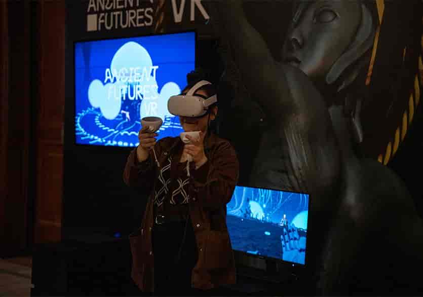‘Ancient Futures’ isminden de anlaşılacağı üzere geçmişle gelecek arasında bir köprü kurmayı hedefliyor ve geçmişimizden ve kültürel mirasımızdan aldığı ilhamla ‘Yarının mitolojileri ve arkeolojik kalıntılarını bugün nasıl oluşturuyoruz?’ sorusunu sergilenen 27 eser ile irdeliyor. Sergi süresince yaratılan VR alanları da ziyaretçiler tarafından deneyimlenebiliyor.