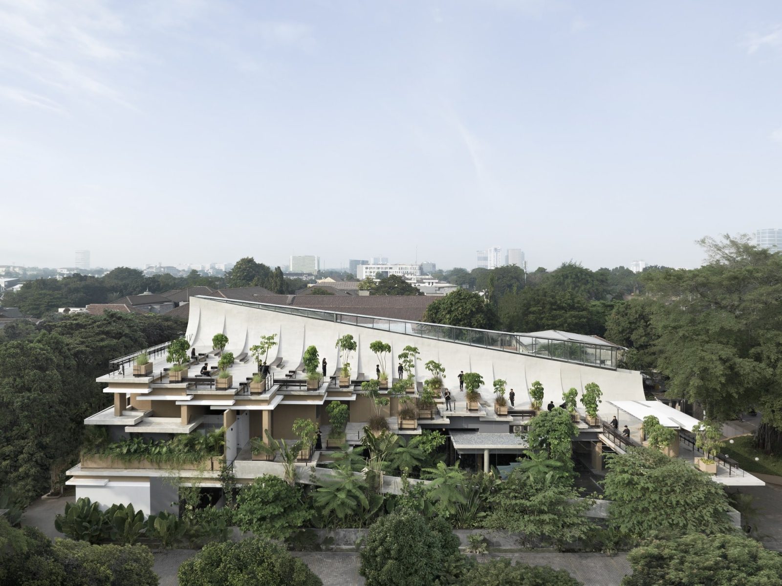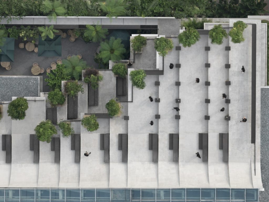 Endonezya merkezli mimarlık ofisi RAD+ar tarafından tasarlanan Aruma Split Garden, iki katlı yapısıyla çok kiracılı bir yerleşke içinde farklı bölgeler yaratma ve doğayı yapılı çevreye sorunsuz bir şekilde entegre etme konusunda yenilikçi bir örnek sunuyor. Jakarta’nın hareketli kentinin ortasında yer alan bu proje hem fiziksel hem de psikolojik sağlığa öncelik veren atmosferiyle restoran mimarisine estetik ve işlevselliğin ötesine geçen bütünsel bir yaklaşım getiriyor. Tasarım, işlevsellik, estetik ve çevresel sorumluluk arasında denge kurarak optimum entegrasyon ve sürdürülebilirliği hedefliyor.