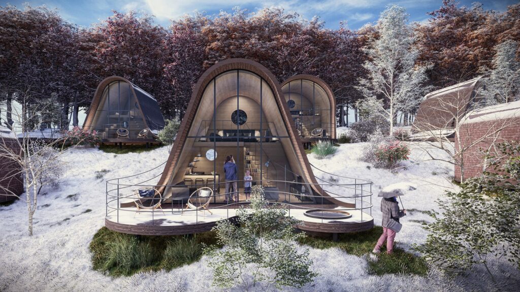 Kompakt, enerji verimli ve doğal ahşap malzemelerle tasarlanmış proje, Türkiye’nin yaz-kış farklı deneyimlerle huzur tatili vadeden bir keşif noktası oluyor.