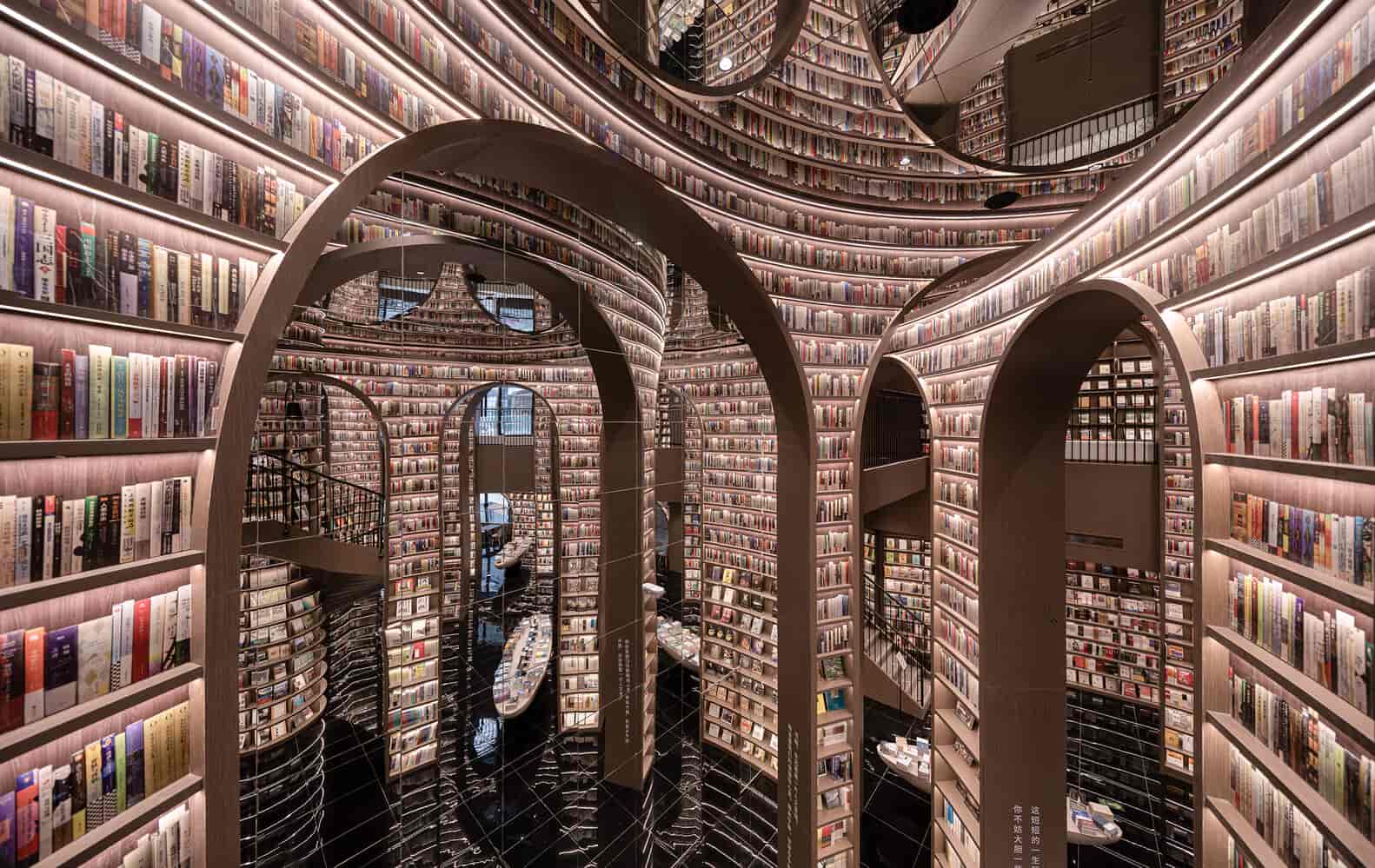 Şangay merkezli iç mimarlık ofisi X+Living Çin’in güney batısındaki Dujiangyan şehrinde bir kitapçı tasarladı. Aynalı tavanların ve yüksek kemerli kitap raflarının bulunduğu yeni mağaza, edebiyatın harikulade dünyasının keşfedilebileceği büyüleyici ve masalsı bir ortam yaratıyor. Cam kapıyı açıp kitapçıya girdiğiniz anda sizi doğal ceviz renginde C formlu sıradışı kitaplıklar karşılıyor. Bu başta düzensiz gibi algılanan bölüm aslında mekanla ziyaretçiler arasındaki bağı güçlendirmek ve dikkat çekmek üzere tasarlanmış. Kavisli formlar mekanda yeni bir iz yaratırken aynı zamanda da alanı ikiye ayırıyor.