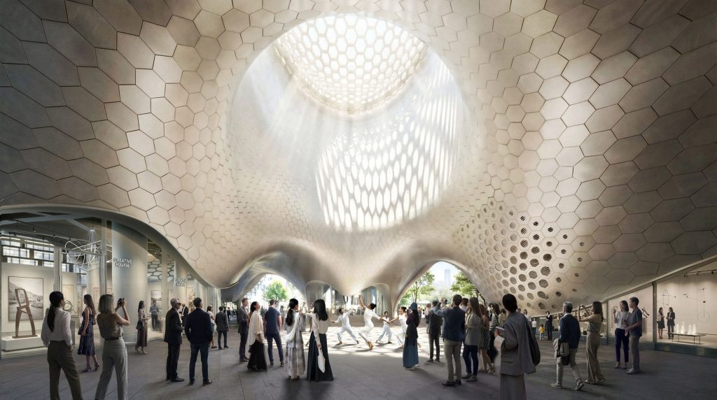 Dünyaca ünlü mimarlık ofislerinin güncel konsept projelerini bir araya getirdiğimiz Nisan 2026 seçkisinde, yeni kentsel gelişim alanlarından stadyum dönüşümü önerilerine, sanat müzelerinden ibadet yapıları ve kültür kurumlarına uzanan çeşitli kapsamda projeler karşımıza çıkıyor. Skidmore, Owings & Merrill (SOM), Edward Peck Design, Büro Ole Scheeren, X Architects ve Kengo Kuma & Associates imzalı bu projeler; farklı ölçek ve programlarda geliştirilen mimari yaklaşımları bir araya getiriyor.