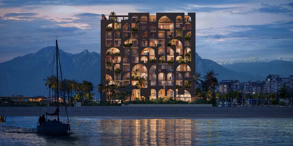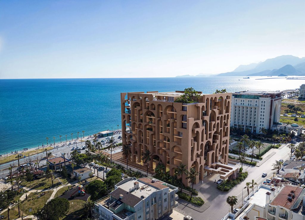 Konyaaltı sahilinde konumlanan Le Méridien Antalya, kıyı hattıyla doğrudan mekânsal ilişki kuran plan şemasıyla öne çıkıyor. Emre Arolat Architecture tarafından geliştirilen proje, ana kütleyi saran özgün kabuğu sayesinde bölgenin yerel mimari referanslarından soyutlanan teatral bir ifade dili oluşturuyor. 2025 yılında inşasına başlanan yapı, Dünya Mimarlık Festivali’nde “Geleceğin Kültür Yapısı” kategorisinde aday gösterilmesiyle uluslararası ölçekte de dikkat çekiyor.