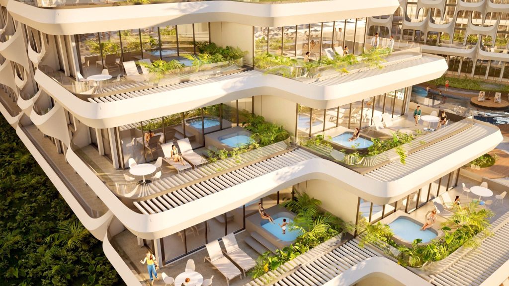 Mimari dil, dalga hareketleri ve kıyı rüzgârlarından ilham alan akışkan geometriler üzerinden şekilleniyor. Katmanlı cephe yüzeyleri ve vurgulu düşey elemanlar, ışıkla birlikte değişen dinamik bir cephe karakteri oluşturuyor. Swissôtel’in konfor ve sade zarafet anlayışı, MAA’nın çağdaş mimari yaklaşımıyla birleşerek Sea Breeze kıyı şeridinde yeni bir yaşam standardı tanımlıyor.