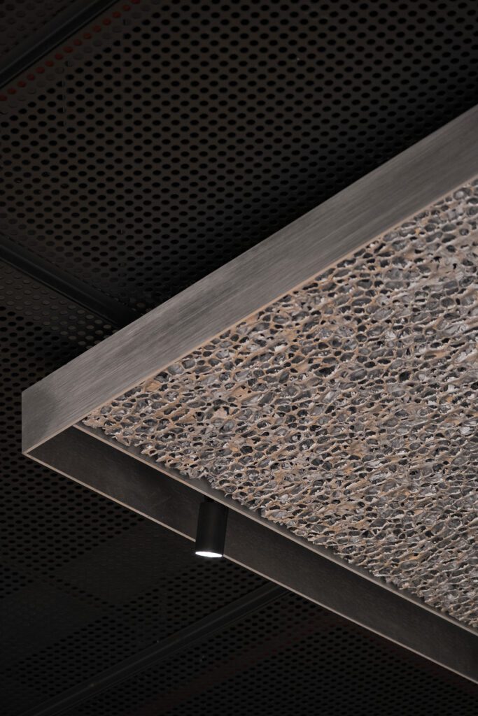 Yapısal olarak iç içe olsalar da mekânlar arasındaki farkı, iddialı ve kontrast bir duruş ile ifade etmek isteyen stüdyo, Ara Güler Müzesi’ne ait alanlarda, siyah-beyaz tonları doğal taş, paslanmaz çelik ve alümniyum köpük gibi sert malzemeleri keskin hatlarla kullanırken Monochrome’a ait alanlarda, aydınlatma kararlarından, malzeme seçimlerine kadar olan farklılıklarla çok daha sıcak bir atmosferle son kullanıcının karşısına çıkıyor.