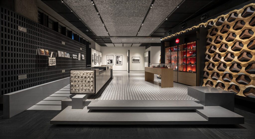 Mekânın ortasına yerleştirilen ana kütlenin üç boyutlu deseni, fotoğrafçılığın ve fotoğraf makinesinin temel öğelerinden olan diyafram açıklığının (apertür) geleneksel formundan esinlenilerek tasarlanıyor. Leica’nın vitrin ünitelerini ve Ara Güler Müzesi’ne ait sergi panolarını barındıran bu kütle aynı zamanda Monochrome’un mutfak alanına da ev sahipliği yapıyor. Projenin öne çıkan ögelerinden olan bu merkezi kütle üzerindeki ışık oyunları hem içeriden hem de dış mekandan algılanan ve dikkat çeken bir görsel etki yaratıyor.