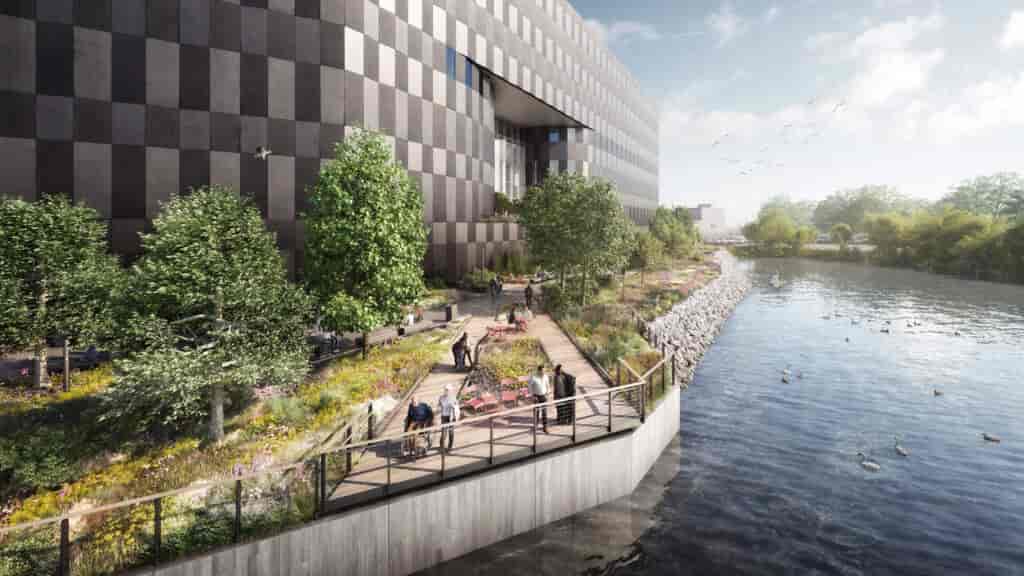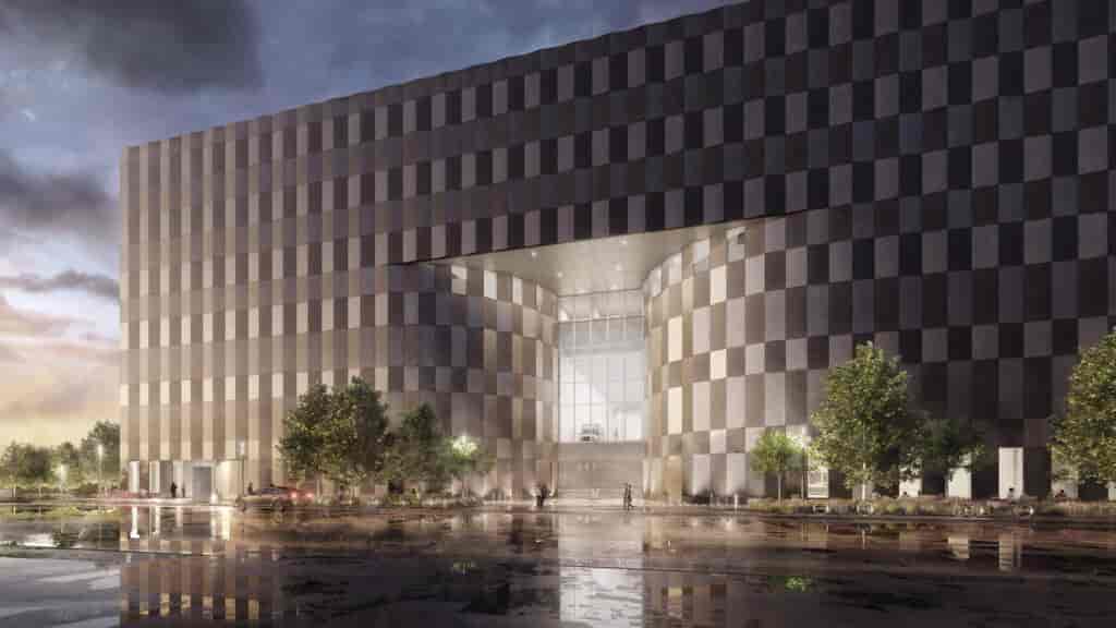 Tasarım, kullanıcıların birlikte uyumlu bir şekilde çalışabileceği mümkün olan en iyi yaratıcı ortamı oluşturmayı hedefliyor. Doğrusal ilerleyen yapının tekdüzeliğini kırmak ve geometrik formları ön plana çıkarmak adına cephe kaplamasında her biri açılı konumlandırılacak prekast beton paneller tercih ediliyor. Bu panellerin, gün boyunca değişen güneşin geliş açısı ile cephede hareketli bir etki yaratması amaçlanıyor. Fonksiyonu ve ölçeği sebebiyle enerji ihtiyacının çok olması beklenen yapının tüketiminin bir kısmını karşılamak adına çatıda 150.000 m²’lik dev bir güneş paneli sistemi planlanıyor.