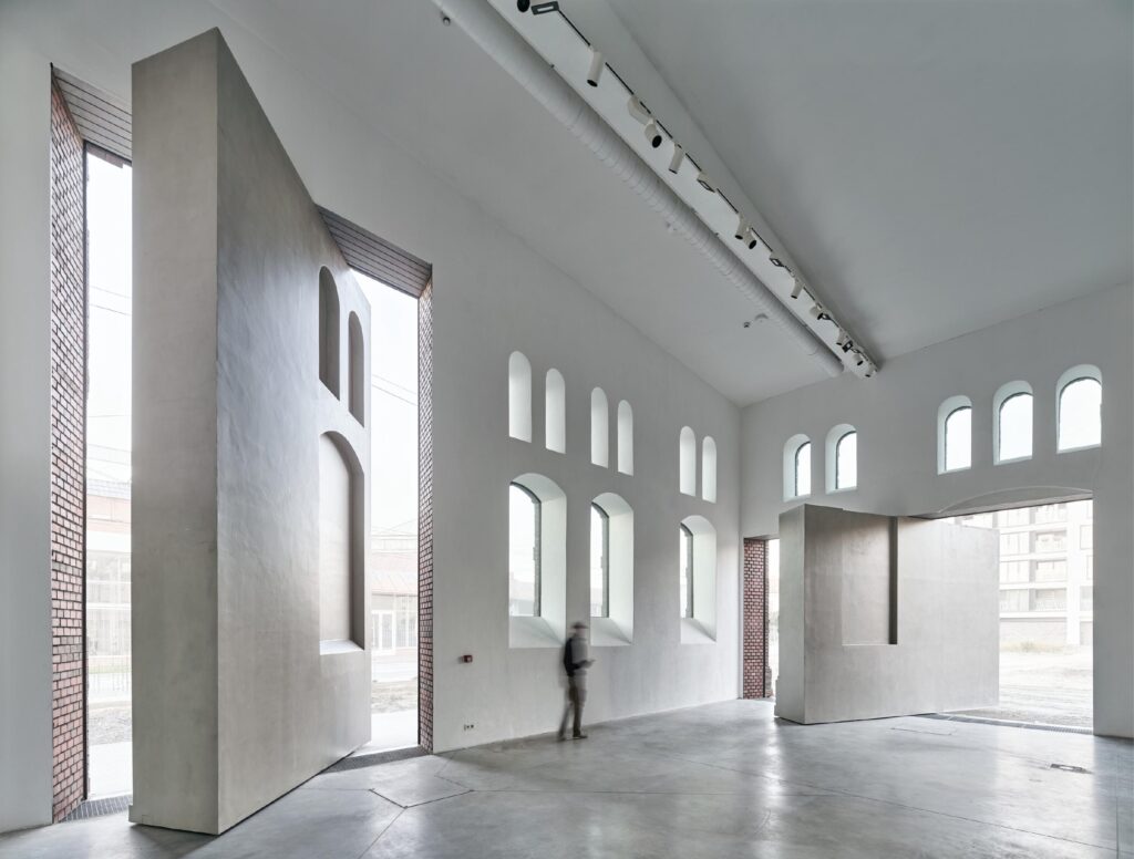 Çek Cumhuriyeti’nin üçüncü büyük metropolü olan Ostrava’da yer alan Plato Contemporary Art Gallery, 19. yüzyıldan kalma eski bir mezbahada yer alıyor. Bina, 1960’lara kadar orijinal işlevini yerine getirmiş ve daha sonra depo ve garaj olarak kullanılmış. Tarihi kompleks yıllar boyunca önemli mimari değişikliklere uğramış (örneğin dış duvarlarında büyük açıklıklar açılmış) ve hatta kısmen yıkılmış. Günümüzde ise kompleks, 2022 yılından itibaren KWK Promes’in kurucusu Robert Konieczny ve ekibi tarafından kompleksin geçmişinin izlerini gizlemek yerine onları ortaya çıkaran tasarım fikrine sahip bir sanat galerisini barındırıyor.