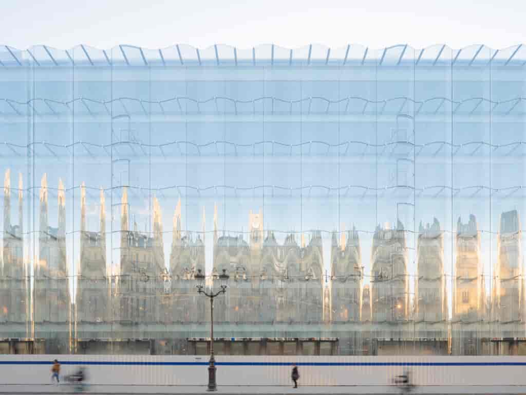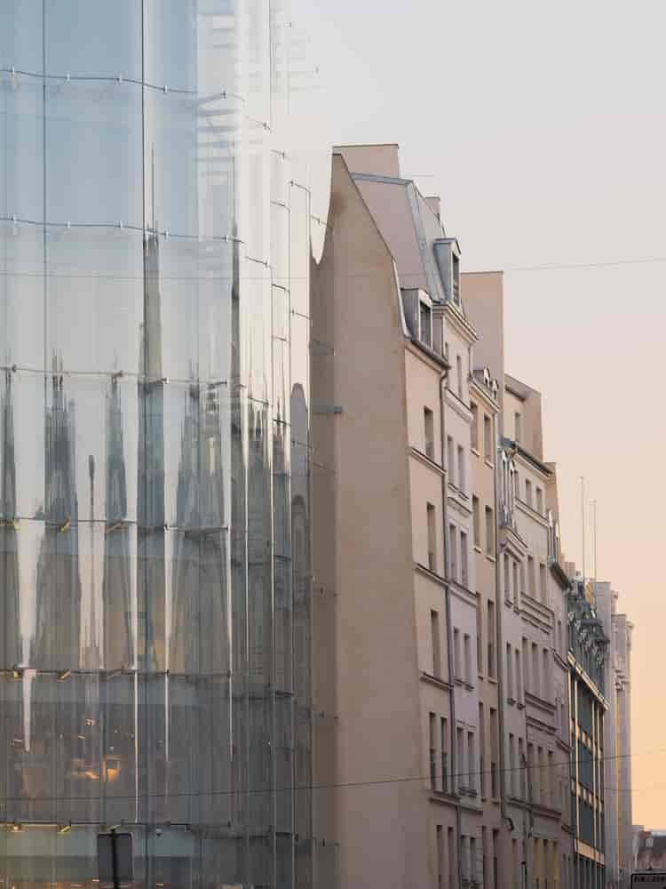 Yeni tasarımın kentsel bağlamla olan ilişkisini güçlendirmek adına cephedeki cam, çevresindekileri yansıtır ve dönüştürür. Oldukça modern olan cephe üzerinde yansıyan tarihi binalar eski ve yeninin kurduğu bağa atıfta bulunur.