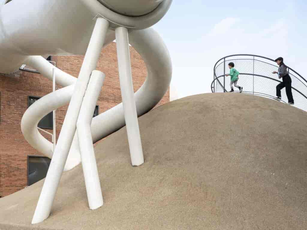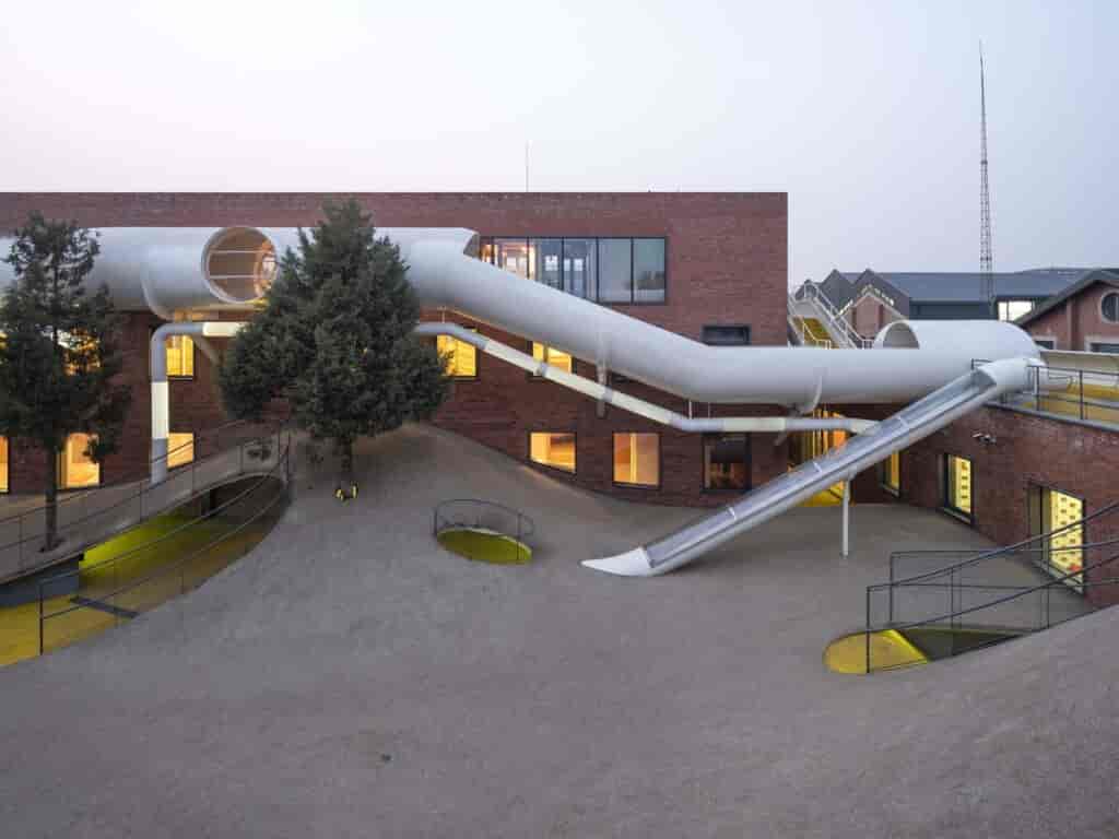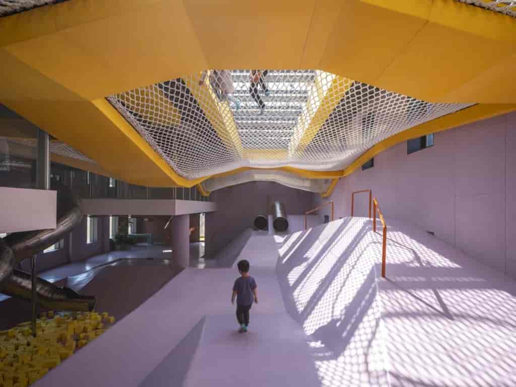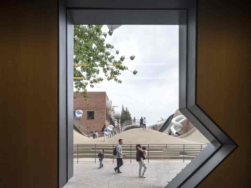 Waa, Pekin’in kuzeyinde konumlanan 1970’lerden kalma bir depo kompleksini çocuklar için eğlenceli ve öğretici bir alan olan The Playscape’e dönüştürdü. Renkli görseller sunan bu keyifli tasarımın proje alanı bir dizi mevcut depodan oluşurken, tesisin kamusal bir cadde ile ayrılan güney bölümü bir köprü yardımıyla çatı teraslarına bağlanmaktadır. Geçiş aynı zamanda bitişikteki anaokuluna giden özel bir rota ve yine çok yakında bulunan halka açık parka erişim seçeneği sunmaktadır.