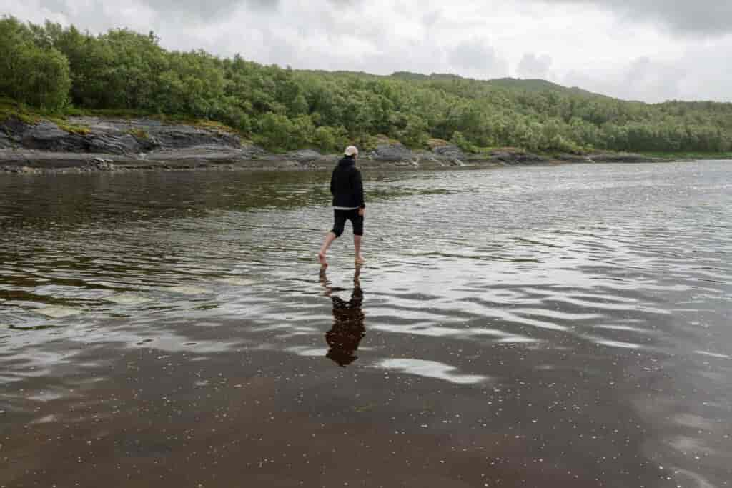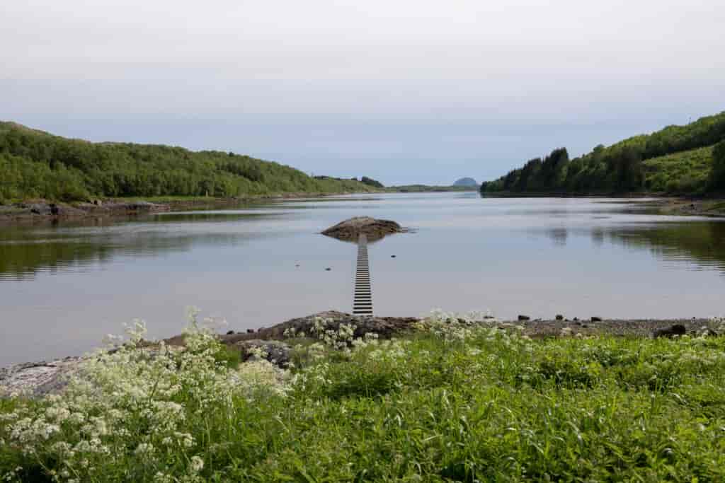 Her bir taşın gelgitin yüksek seviyesinde tamamen sular altında kaldığı ve düşük seviyesinde görünür hale geldiği tasarımda kıyıyı küçük bir adaya bağlamak için gerekli mesafeyi tamamlayacak şekilde 55 taş kullanıldı. Basamaklarda malzeme olarak bölgedeki diğer kayalar ile uyumlu olacak dokuda yerel bir şirketin ürünü olan granit tercih edildi. Snøhetta, 500 milimetre genişliğindeki yürüyüş yolunu iki kişinin yan yana geçmesine izin verecek şekilde olabildiğince dar tasarladı. Aynı zamanda ziyaretçilerin güvenli bir şekilde yürürken suya bakabilmeleri için de her taş basamak arasında boşluklar oluşturuldu.