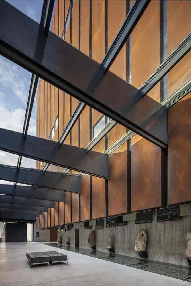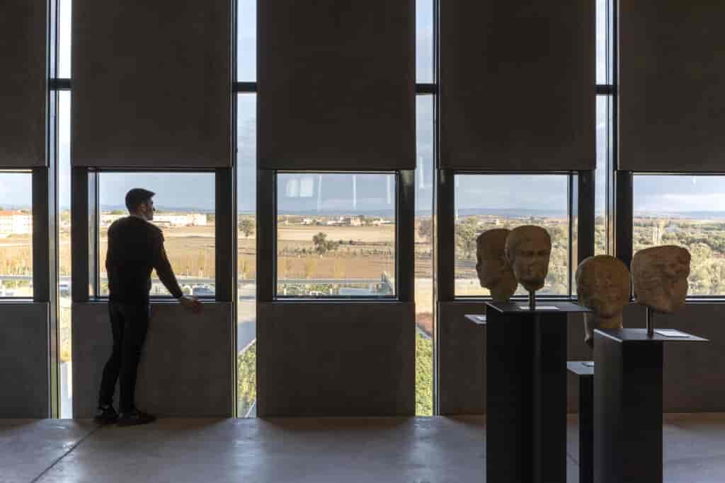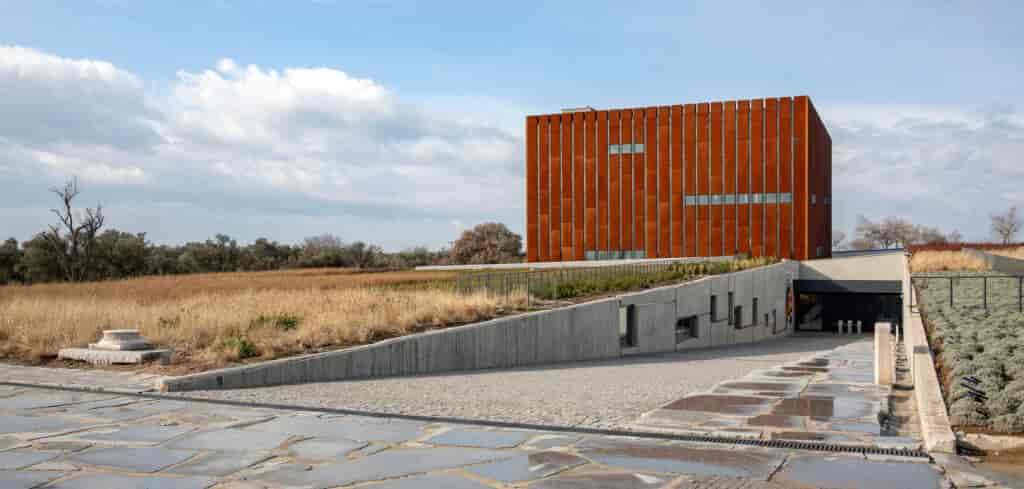 Ekip ‘kazıdan çıkarılmış eser’ fikrinden esinlenerek zamanla paslanan metal bir kaplamaya sahip (korten) 32’ye 32 metrelik bir kübik form oluşturmuş. Yaratılan bu küp topraktan çıkarılan arkeolojik bulgulara gönderme yapıyor. Tasarım tüm destekleyici servis fonksiyonlarını yerin altındaki tek bir katta toplamış. Yer altında bulunan bu fonksiyonlar, zeminde çevredeki tarlaların devamı gibi algılanması adına peyzajla örtülmüş. 2000 m2’lik sergi alanı küp formun içerisinde bulunan rampalar aracılığıyla bağlanan dört kata bölünmüş. Ziyaretçilerin yapıya girişi 12m genişliğindeki bir rampadan aşağı doğru inerek gerçekleşiyor. İçeri girer girmez ise ziyaretçiler sirkülasyona dahil ediliyor.