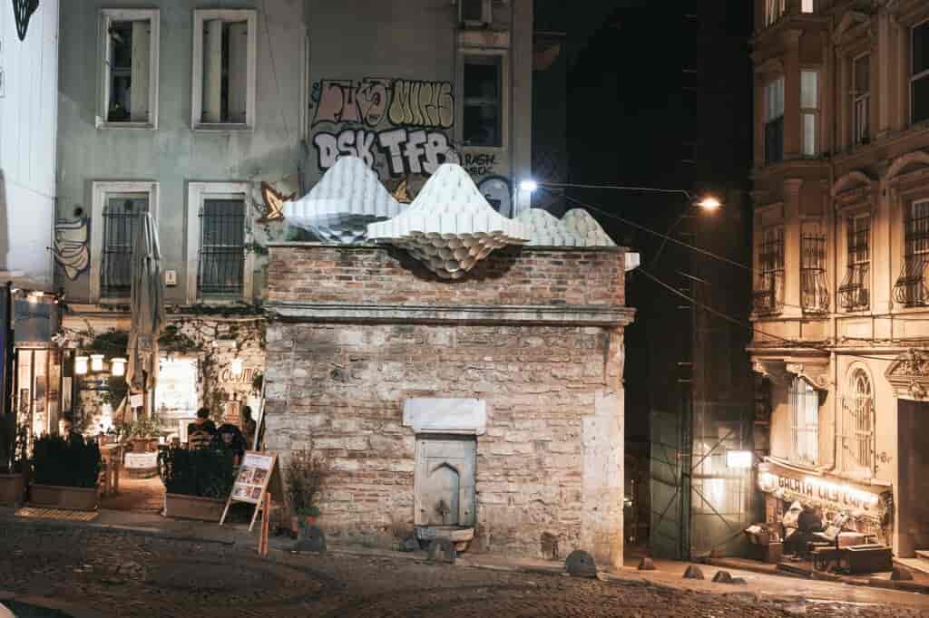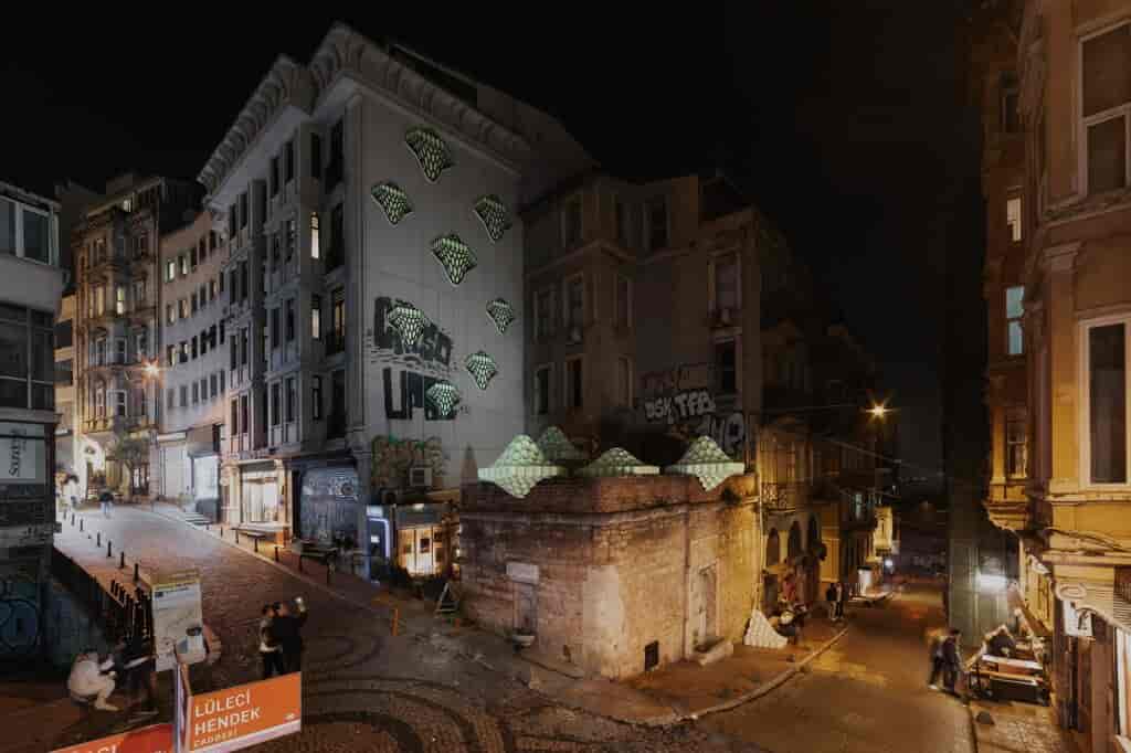 Melike Altınışık Architects, Beyoğlu Işık Sergisi’nde, İstanbul’un tarihi boyunca farklı kültürlerin buluştuğu kozmopolitlik kavramını bugün hala bile tartışmaya açan Beyoğlu’nda, tünel başında, Yüksek Kaldırım Caddesi ve Fırçacı Sokağını bağlayan Lüleci Hendek Caddesi üzerinde konumlanan, kent içerisinde kaderine terkedilmiş, unutulmuş, birçok karşılaşmanın ve yeniden anlamlandırmaların en önemli tanıklarından biri olan Matbah Emini Hasan Ağa Çeşmesi’nin (1649) ‘YANKI’ sı ile görünmeyeni görünür kılarak kentliyle eşsiz bir diyalog kuruyor.