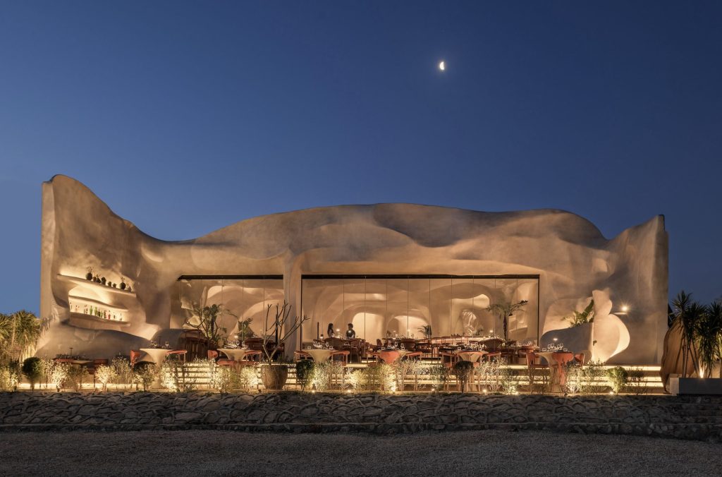 Mısır merkezli mimarlık stüdyosu Badie Architects, organik geometriyi kadın vücudunun zarafetiyle buluşturan yenilikçi bir restoran tasarımına imza attı. Kahire’nin Yeni Giza bölgesinde bir tepeye konumlanan ESCĀ CUEVA, modernist ve kavernöz bir yapıya sahip. Mağarayı andıran atmosferiyle gösterişli mekân, istenen organik formu yakalamak için gelişmiş 3D teknolojisi ve yazılımı kullanılarak tasarlandı. Tasarım, mimarinin insan davranışı ve fiziksel deneyim üzerindeki dönüştürücü gücünü vurgularken, dijital üretimin sunduğu olanakları fiziksel bir mekâna dönüştürüyor.