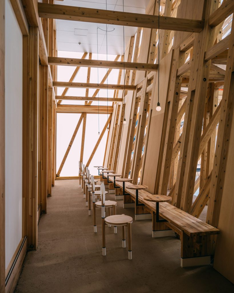 Sökülebilir ve geri dönüştürülebilir malzemelerle inşa edilen yapı, pasif havalandırma, deniz meltemiyle doğal soğutma ve minimal temeller gibi sürdürülebilir stratejilerle düşük karbon ayak izi hedefliyor.