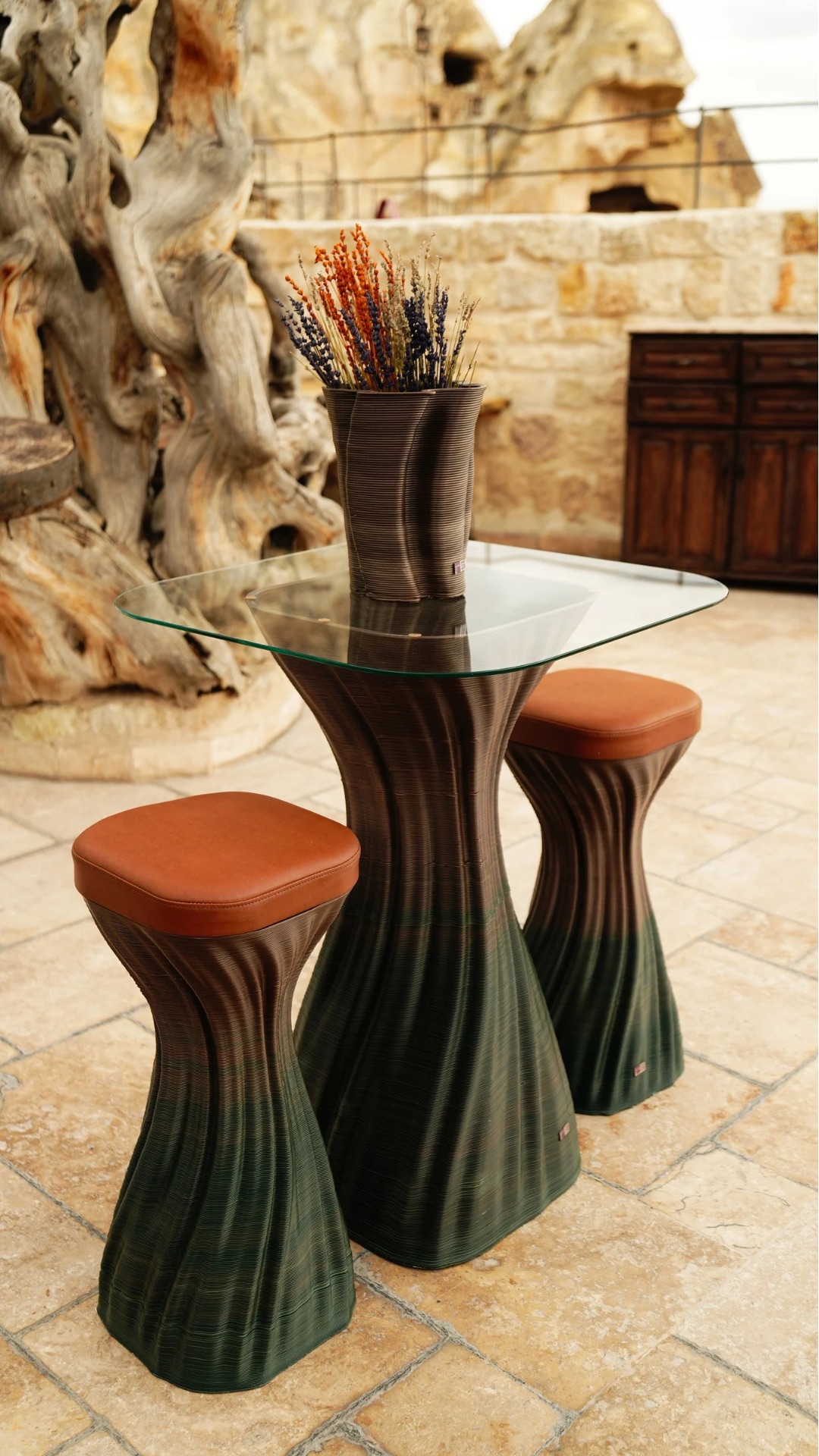 Factory of Us, büyük ölçekli 3D yazıcı ve tarım atıklarından oluşan biyokompozitlerle Türkiye’nin ilk geri dönüştürülebilir –  sürdürülebilir mobilya ve heykelsi formlar üreten tasarım ve üretim markasıdır.