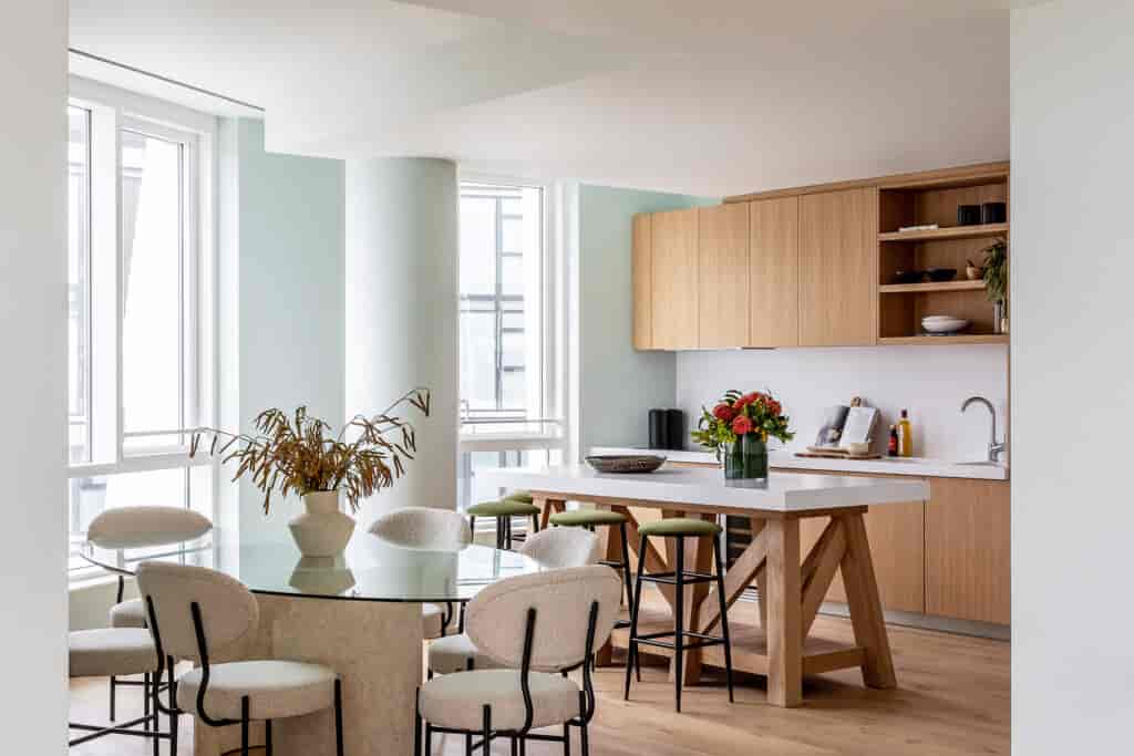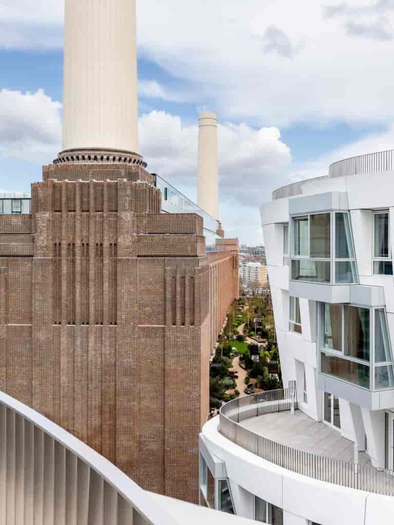 Dairelerin çoğu şehrin ikonik yapılarından olan Battersea Elektrik Santrali manzarasına sahip. Gehry Partners, daireler için LA ve Londra’ya atıfta bulunan iki renk paleti tercih ediyor. Londra paleti, yapının tarihi ile bağ kurarken, LA paleti daha sıcak tonlardan oluşuyor.