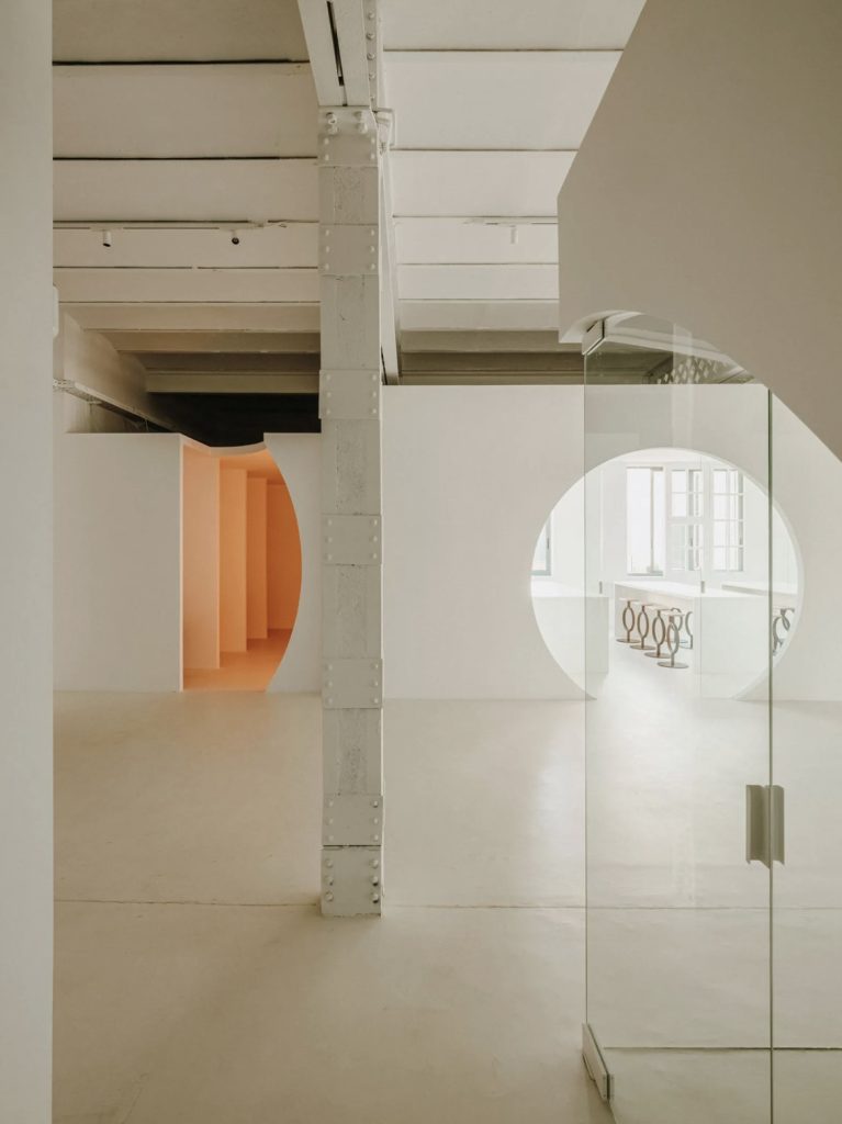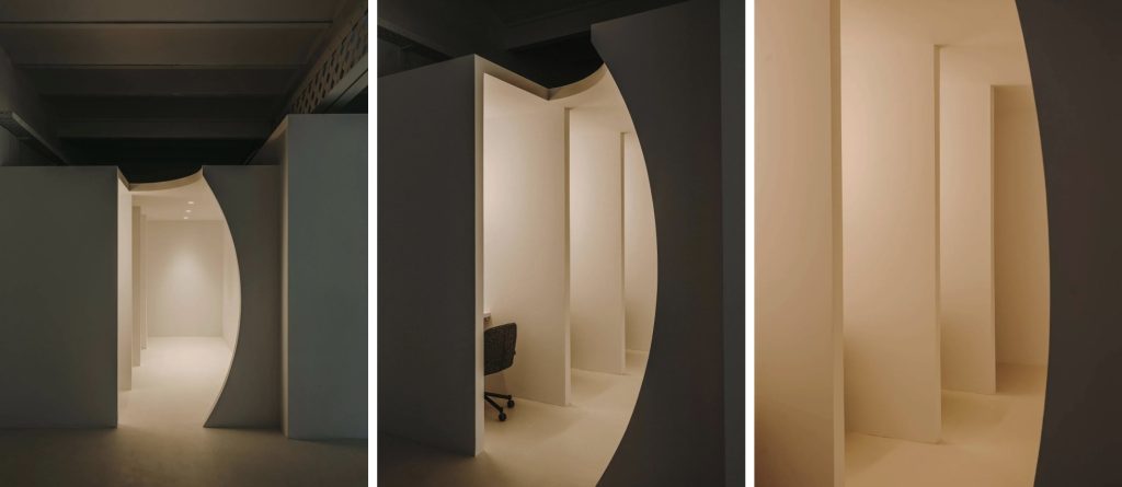 Dairesel açıklıklar kapılar ve pencereler oluşturarak ve ışığın mekanda dolaşmasına izin vererek bir sanat ve yaratım dünyasını çağrıştırıyor. Her modül, benimsediği mikro mimari stratejisiyle diğer odalarla kompozisyonel olarak ilişkili olan küçük bir heykel olarak tasarlanmış.