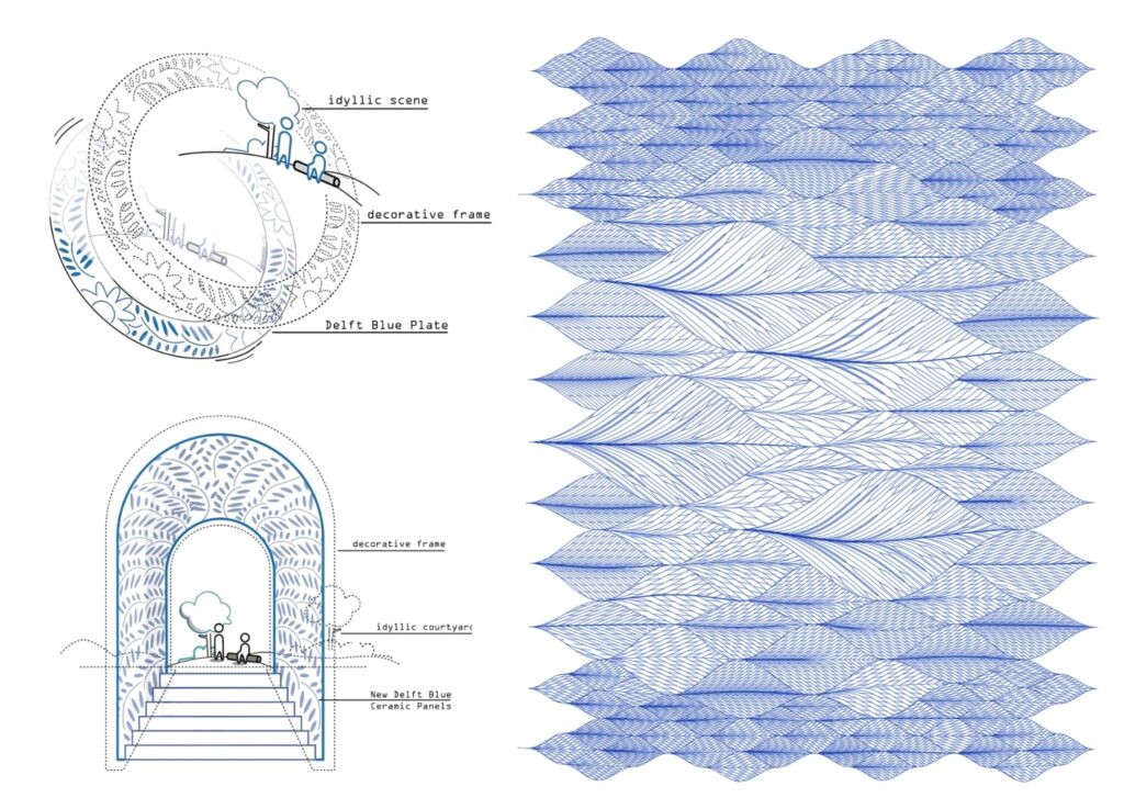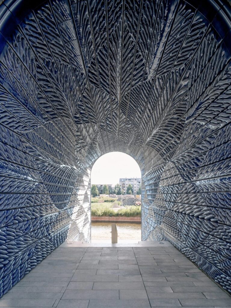 Projeyi oluşturan yaklaşık 40 santimetreye 30 santimetre ölçülere sahip 3000 adet seramik karoya uygulanan şeffaf mavi cam verniği ile geleneksel Delft mavisi rengi elde edilmiş. Beton merdivenleri örten kemerlerin her birinin üzerindeki desenler, insanları iki farklı kamusal alan arasındaki merdivenlerde yönlendiren, bir taraftan diğer tarafa büyüyen bir yaprak deseni oluşturan bir algoritmaya sahip.