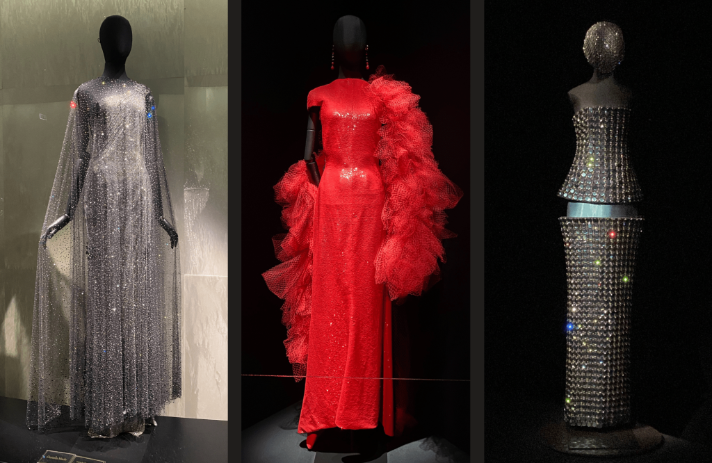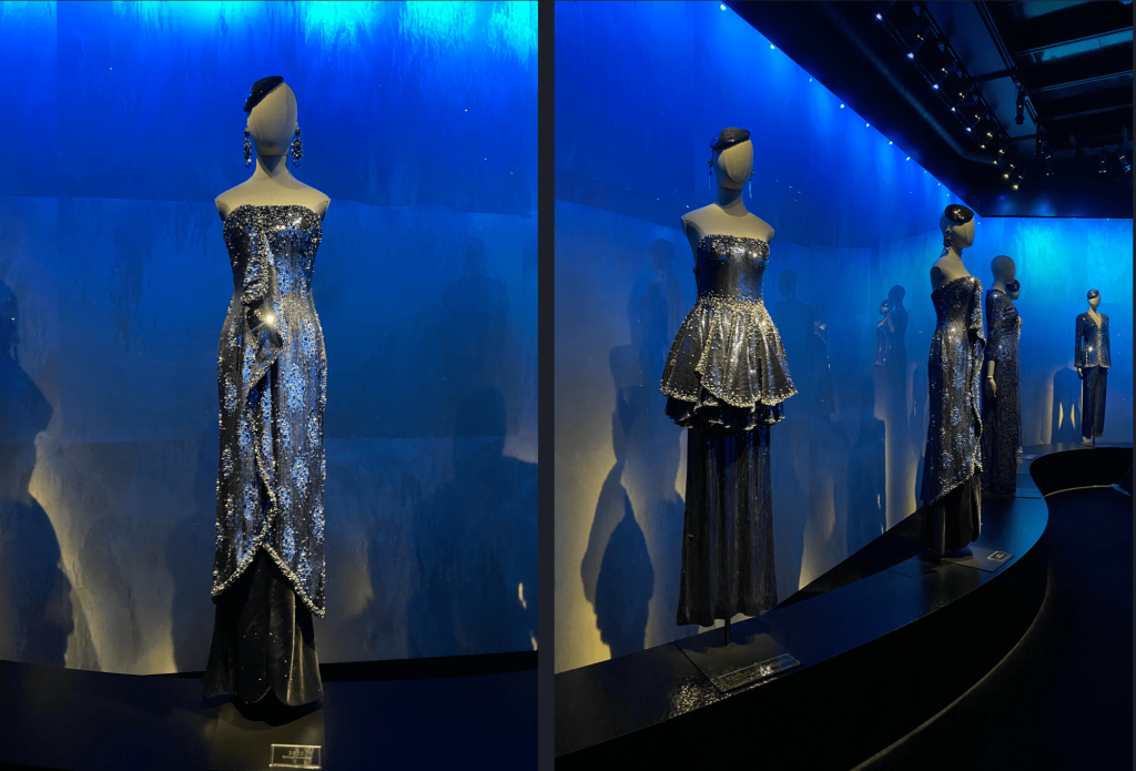Sergide Armani Privé’nin yalnızca podyumlarda değil, uluslararası kırmızı halılarda etkisini gösteren parçalar da bulunuyor. Irina Shayk’ın Cannes Film Festivali’nde giydiği siyah-beyaz dramatik elbise ile Cate Blanchett’in 2007 Oscar töreninde tercih ettiği gümüş işlemeli couture tasarım, sergideki dikkat çekici örneklerden.