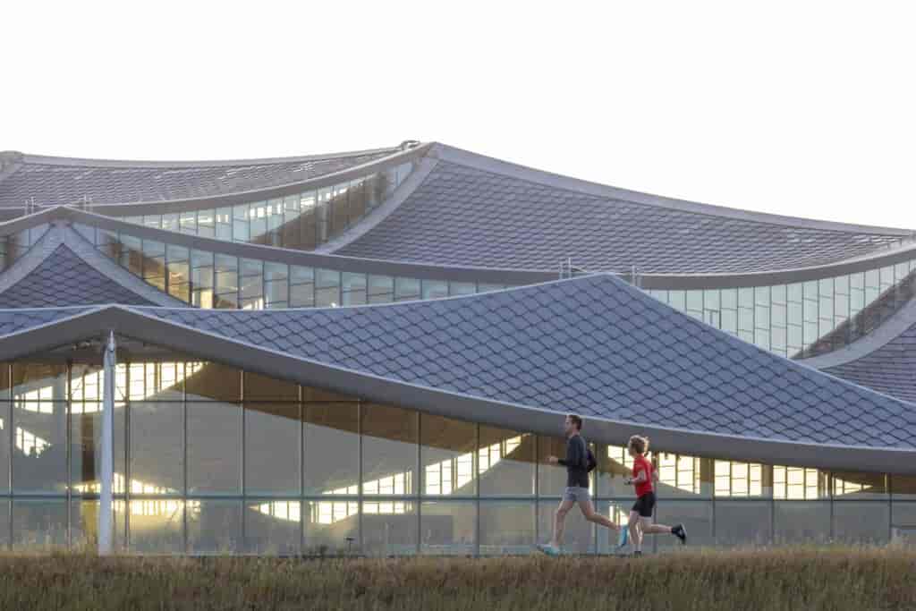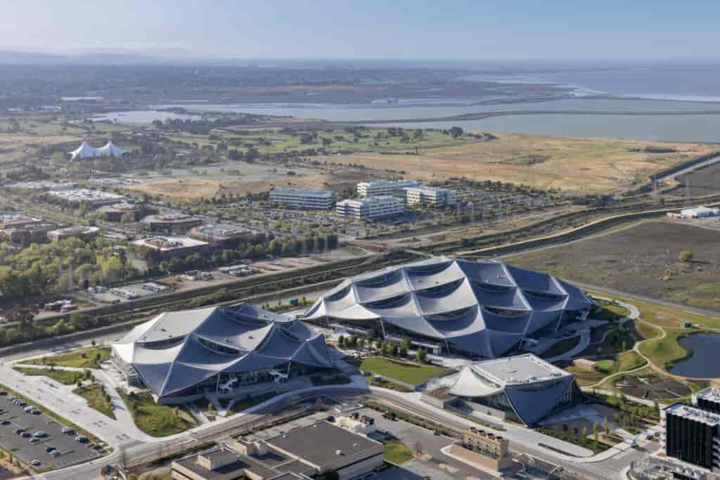 Dünyanın en bilinen mimarlık ofislerinden Kopenhag merkezli BIG ve Londra merkezli Heatherwick Studio tarafından tasarlanan Google’ın Kaliforniya Silikon Vadisi’ndeki Bay View Kampüsü beş yıllık inşaat sürecinin ardından açıldı. Google’ın tasarım ve mühendislik ekipleri ile birlikte tasarlanan proje, Google şirketi için iki ofis binası, 1000 kişi kapasiteli bir etkinlik merkezi ve kısa süreli çalışanların kullanımına uygun 240 konaklama biriminden oluşuyor. 100 bin m²’lik dev bir alana yayılan kampüs, üçgen benzeri eğimli formlardan oluşan çatısıyla dikkat çekiyor. Çatının öne çıkan özelliği ise 50.000 adet güneş paneli içeren bir sisteme sahip olması. Yaratılan kabuk, yapının enerji ihtiyacının %40’ını karşılayacak kapasitede ve kampüsün tasarımda alınan buna benzer önemli sürdürülebilirlik kararları ile 2030 yılına kadar tamamen karbonsuz enerji ile çalışmak gibi oldukça etkileyici bir hedefi var.