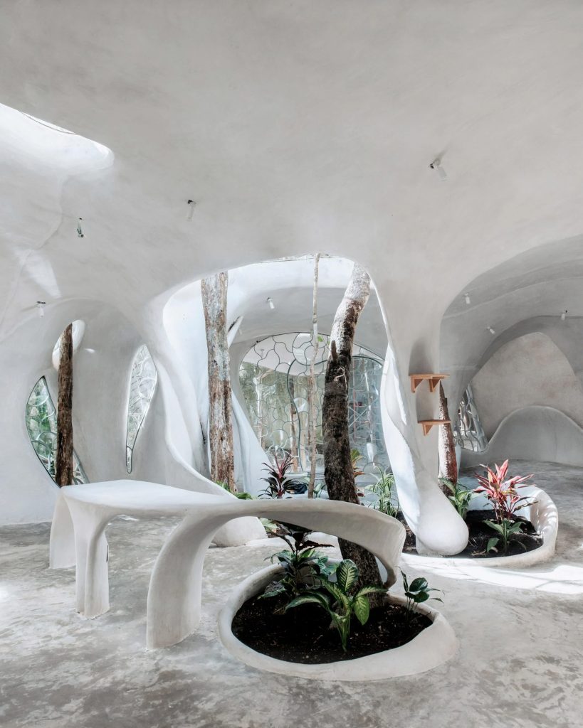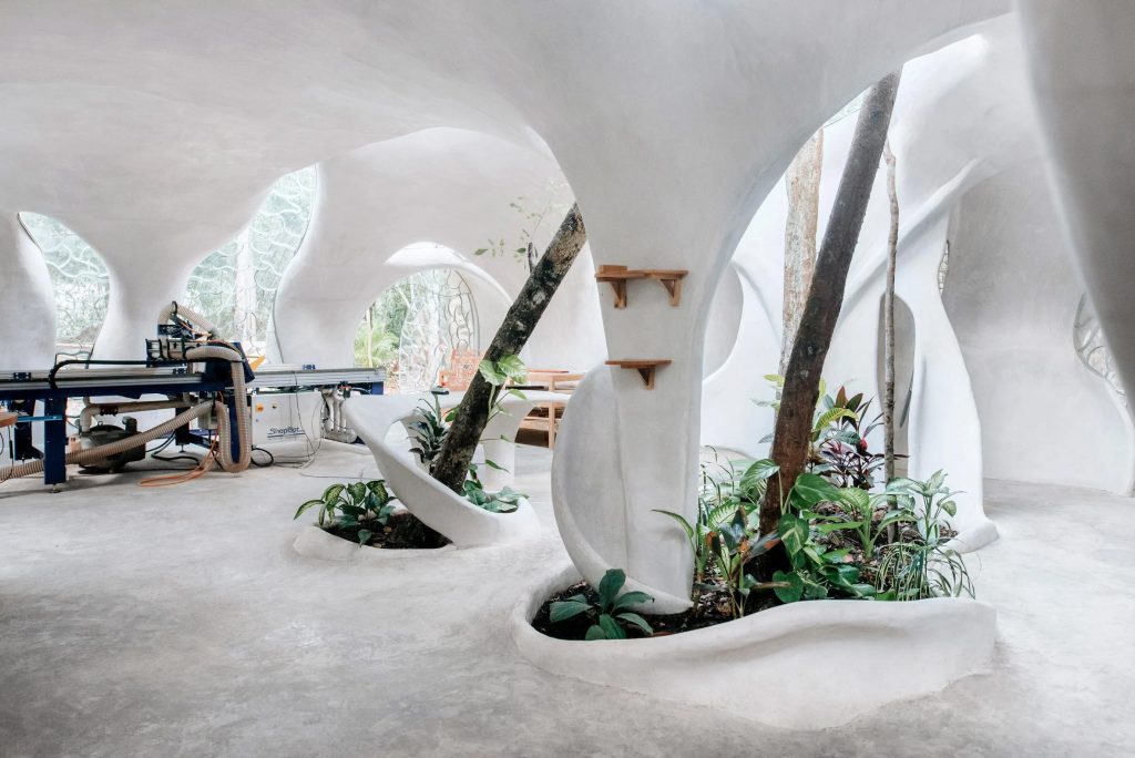 Mimarlık stüdyosu Roth, Tulum’da organik formuyla dikkat çeken bir yaratıcı laboratuvar tasarladı. ‘Fab Lab’ olarak adlandırılan yapı, Yucatán yarımadasında konumlanıyor. Proje, Roth Mimarlık ofisine ev sahipliği yaparken aynı zamanda da bir ‘yaratıcı üretim alanı’ olarak hizmet veriyor. Roth’un diğer tasarımlarına da göz kırpan bu sıra dışı tasarım, ilhamını doğadan alıyor ve düzensiz gibi görünen organik formları çarpıcı bir ahenk ile bir araya getiriyor. Bağımsız binalar olarak kurgulanan proje, bu yaklaşımıyla araziyle bütünleşmeyi amaçlıyor. Merkezi hacmi ise kıvrımlı bir formda yükselerek kompozisyona görsel anlamda dinamik bir odak noktası yaratıyor.