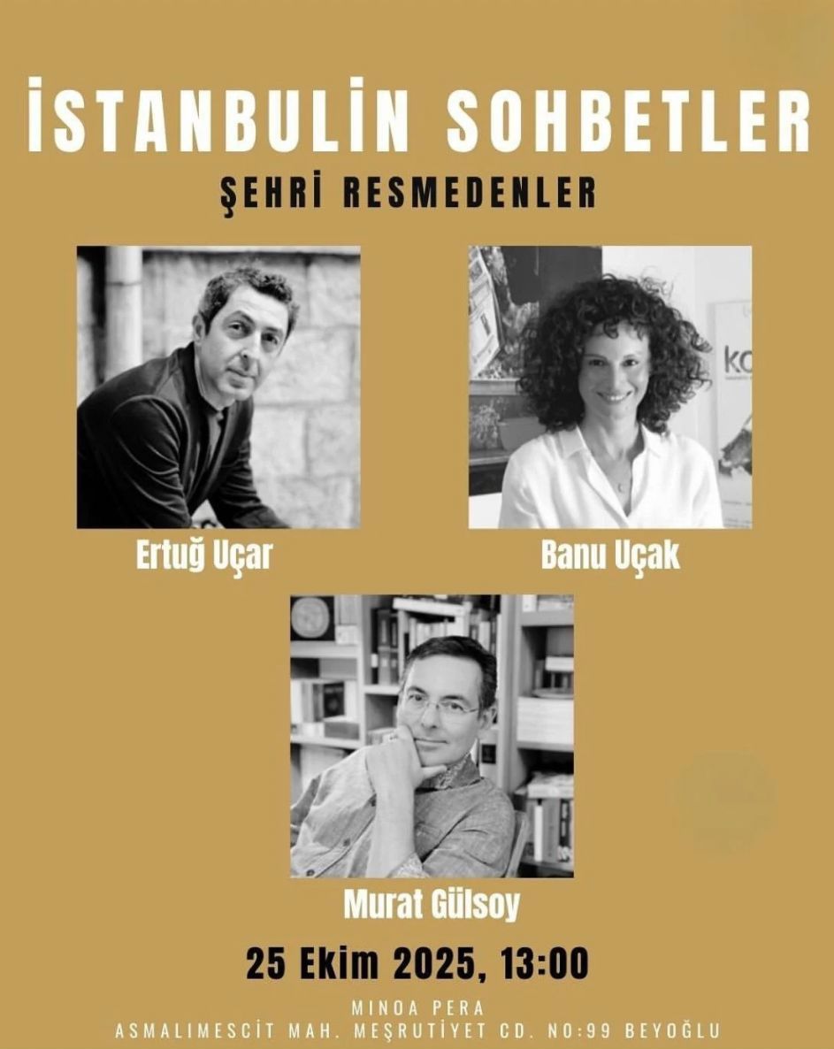 2025 Mart ayında Can Yayınları’ndan çıkan ve kısa sürede ikinci baskısı yapılan İstanbulin kitabının yazarı, mimar Ertuğ Uçar, Banu Uçak’ın moderatörlüğünde İstanbul’a duydukları derin ilgiyi ve gözlemlerini yeni bir sohbet dizisine taşıyor. Her ay Minoa Pera’da farklı bir konukla bir araya gelerek İstanbul’un çok katmanlı dokusunu kültür, sanat, edebiyat, mimarlık, kent tarihi ve gündelik yaşam pratikleri üzerinden tartışmaya açacakları serinin ilk konuğu yazar ve akademisyen Murat Gülsoy olacak.