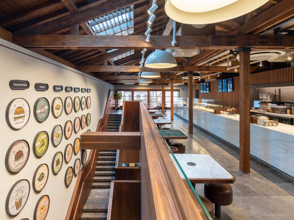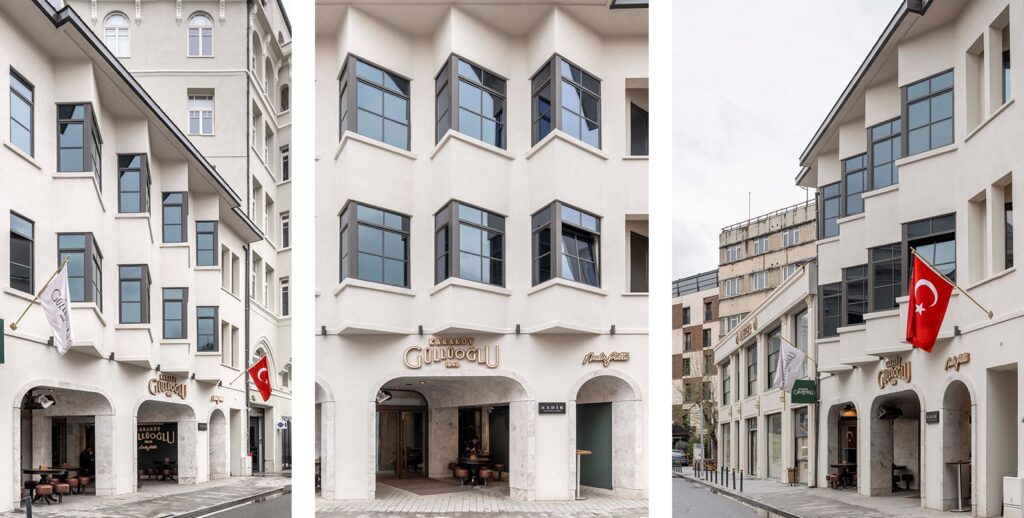 Teğet Mimarlık, Türkiye’nin köklü markalarından Karaköy Güllüoğlu baklavacısının Sağlıkhan binasındaki mimari ve iç mimari tasarımını tamamladı. Karaköy limanındaki ince uzun antrepo parsellerinin birinde bulunan yapının tasarımında ana fikir; caddeden girilen zemin katı, iki kat üstteki çatı kata açarak yekpare bir mekan yaratmak. Kullanıcı deneyiminin en iyi şekilde çalışabilmesi için de lezzet, estetik ve teknik üzerine yapılan deneylerle markanın dinamik ve modern kalması sağlanıyor. Karaköy’ün yerel ve girift dokusunu tarifleyen Fransız Geçidi’yle ve Ömer Abed Han’la benzer şekilde mekanlar arasında bir ağ ören Karaköy Güllüoğlu, yenilenme sürecinin ardından modernist bir binada yeniden hayat buluyor.