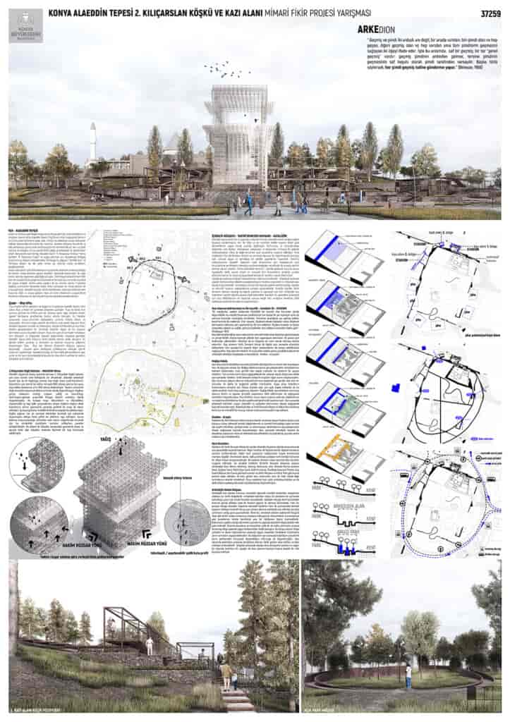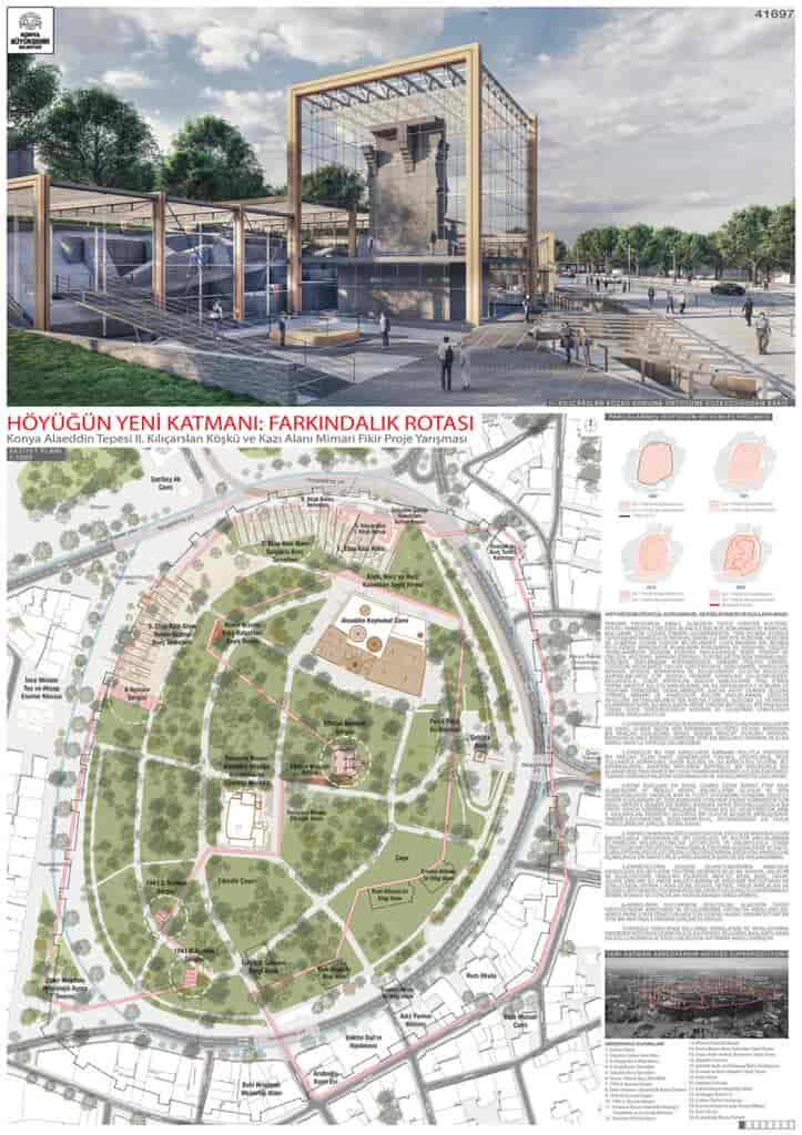 Konya’nın önemli tarihi, doğal ve arkeolojik sit alanlarından biri olan yarışma arazisinin nitelikli ve özgün bir proje ile mekansal potansiyelinin değerlendirilmesine odaklanan ‘Konya Alaeddin Tepesi II.Kılıçarslan Köşkü ve Kazı Alanı Mimari Fikir Yarışması’ sonuçlandı. Jürinin yaptığı değerlendirmenin ardından birincilik ödülünü Dr. M. Batu Kepekçioğlu’nun temsilcisi olduğu proje ekibi kazandı.