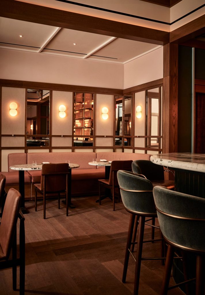 AvroKO, tasarımını şöyle ifade ediyor; “Oiji Mi’nin tasarımı, Manhattan’ın bu klasik sosyal kulüplerini cesur mermerler, zengin deri ve kadife kumaşlar ve koyu ceviz ahşaplar aracılığıyla hatırlatıyor, ancak Kore ve Amerikan kültürünün kesişimini temsil edecek şekilde yeniden tasarlıyor.”