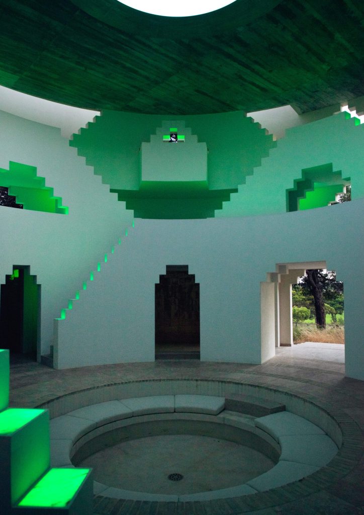 Mimar Tarek Shamma, ünlü ayakkabı tasarımcısı Christian Louboutin için Portekiz’in gizli sahil kasabası Melides’te bir kule tasarladı. Geometrik açıklıklara ve çapraz merdivenlere sahip geniş beton silindir olarak doğal çevre arasında kendini gösteren ‘La Folie’ için Jantar Mantar, Hindistan’ın basamaklı kuyuları ve Parthenon gibi ikonik yapılardan ilham alınmış. Estetik değerin ön planda tutulduğu simetrik iç mekanın meditasyon, parti ve etkinlikler gibi birçok fonksiyon için kullanılabilir olması amaçlanmış. Dıştan kapalı ve dingin görünen yapı, iç mekanın renkli aydınlatmasının sağladığı sürekli değişen ambiyansı ile kontrast oluşturuyor.